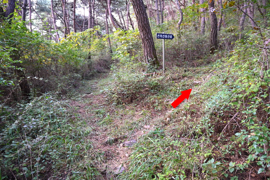 지금은 사용하지 않는 붓도랑을 거쳐 너른 길을 오르는데, 갈림길에서 이정표는 오른쪽으로 선의산 정상을 가리킵니다.