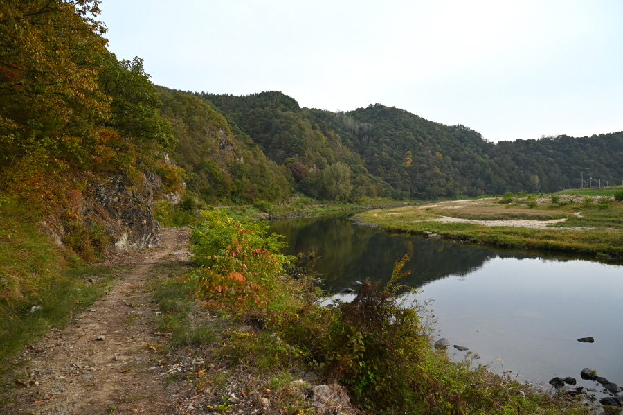 강변을 350m 돌아 바위 절벽을 U자로 뚫은 질마 바위를 빠져 나갑니다. ‘질마’는 짐을 실려고 소의 등에 얹는 안장이며, ‘길마’의 방언입니다.