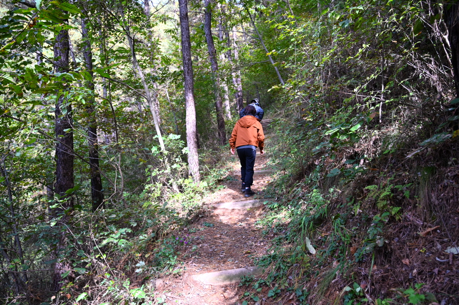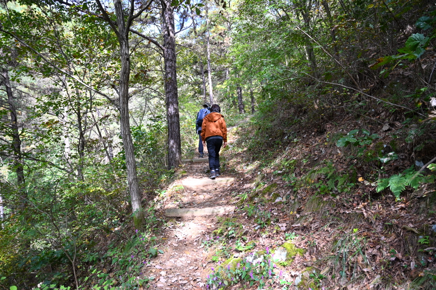 잡풀이 웃자란 오른쪽은 전도교에서 오는 '소풍 가는 길'. 산길은 완만하게 산비탈을 돌아올라 후도교에서 약 30분이면 북고사에 도착합니다.