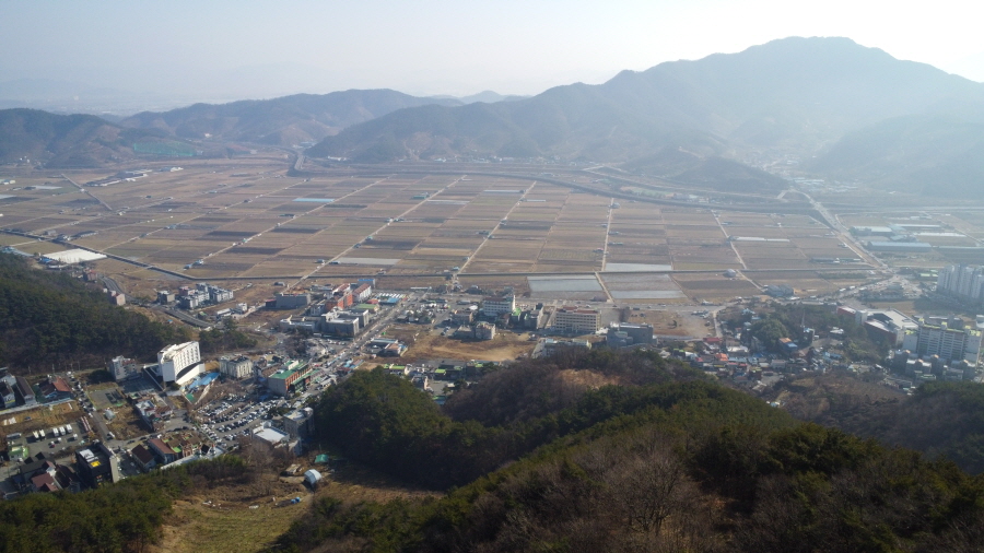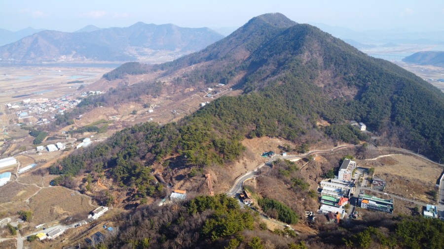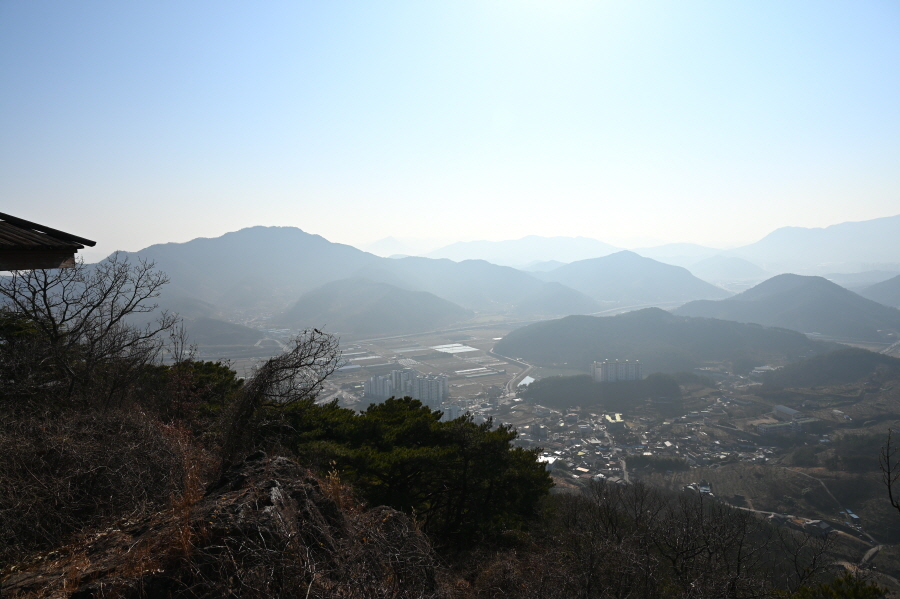 정상에는 두 개의 정상석과 정자 쉼터가 있습니다. 조망은 남서쪽 옥녀봉 뒤로 무릉산이 보이며, 시계 반대방향으로 청룡산(작대산) 천주산 구룡산 백월산이, 북쪽으로 천마산 뒤로 낙동강 넘어 처녀봉과 발아래 마금산온천이 보입니다.