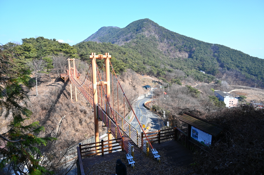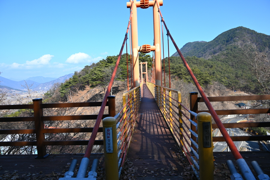 마금산과 천마산을 연결하는 고개 마루를 가로질러 놓인 다리입니다. 길이 70m로 2010년 2월에 준공하면서 마금산온천의 새로운 명물이 됐습니다.