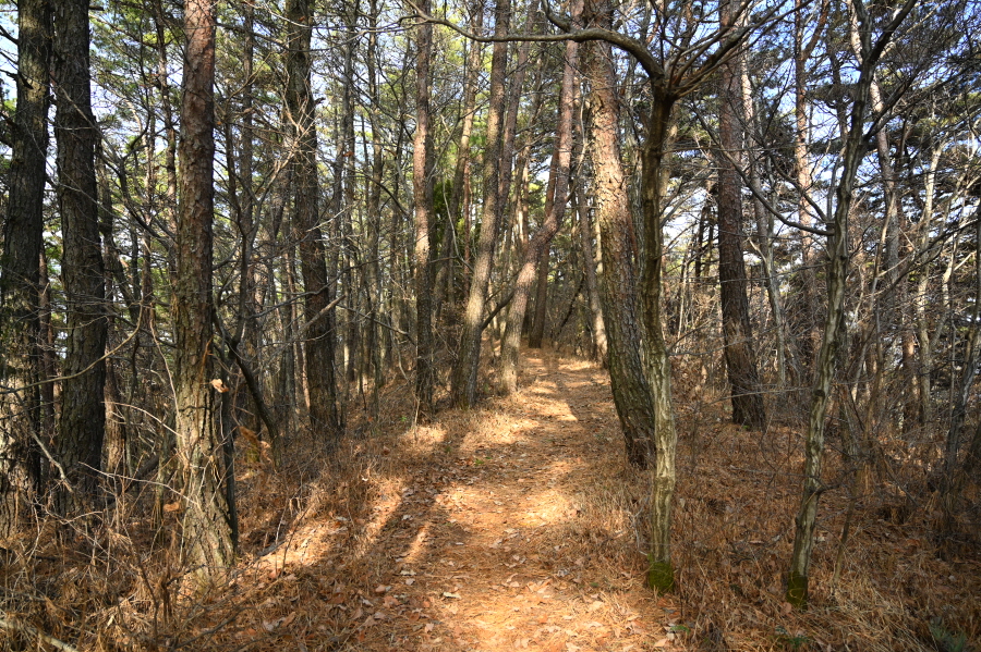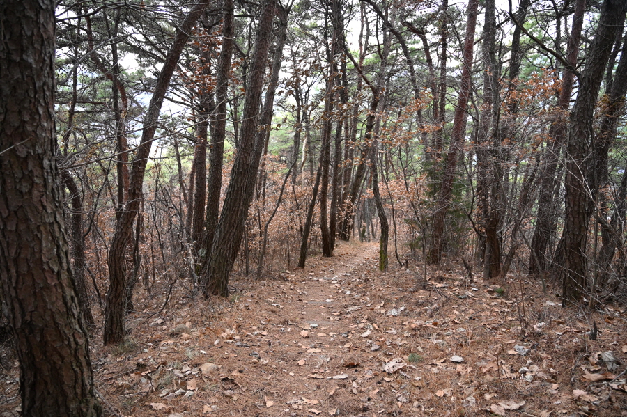 100여 m면 마지막 민가를 벗어나 본격적인 산길에 들어섭니다. 솔갈비가 푹신하게 깔린 완만한 산길이 이어지다 차츰 가팔라집니다.