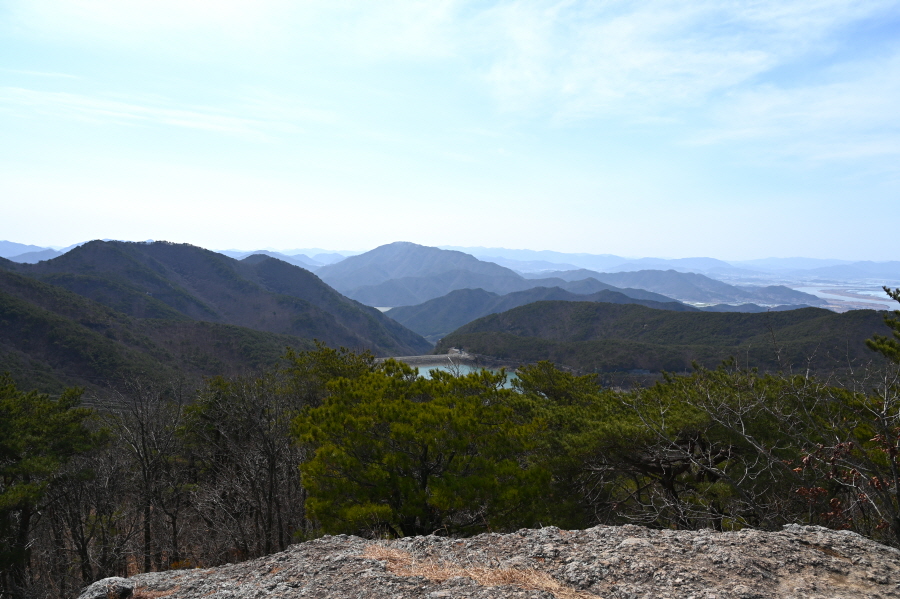 김씨 묘에서 직진해 15분이면 천태호 주차장에서 내려오는 산길과 만나며, 꿈바위 전망대에 도착합니다.