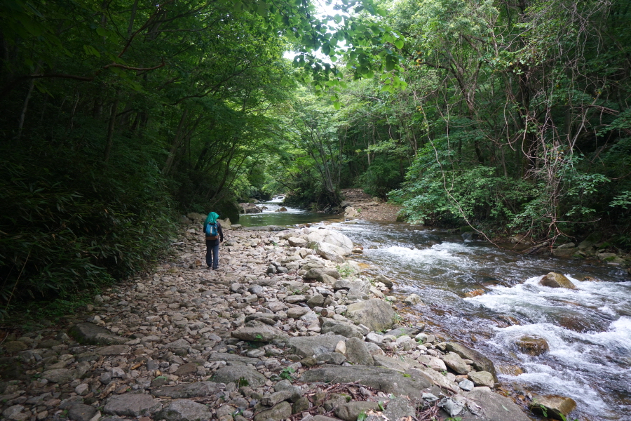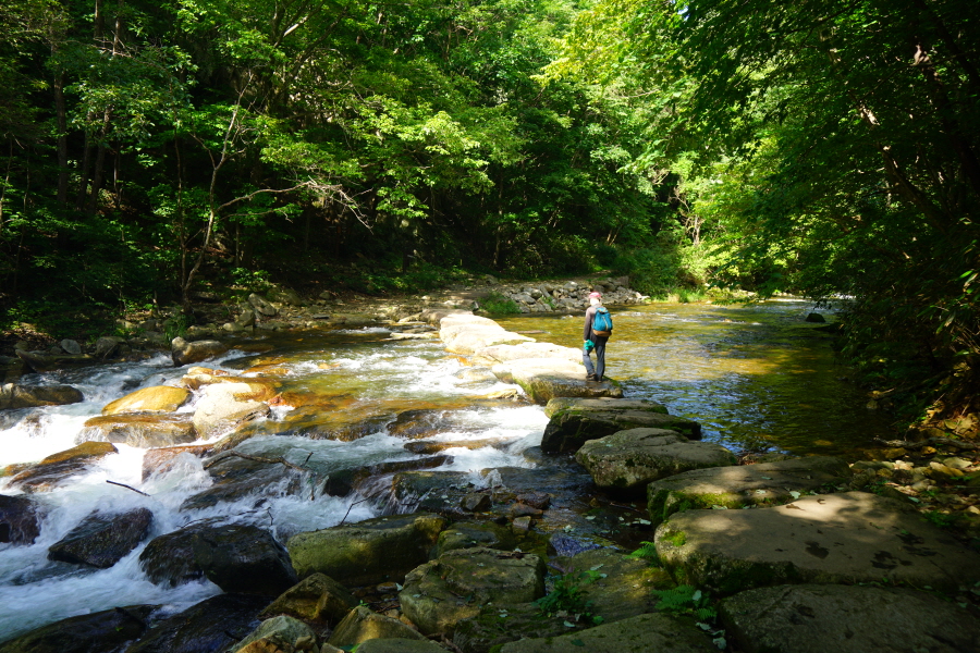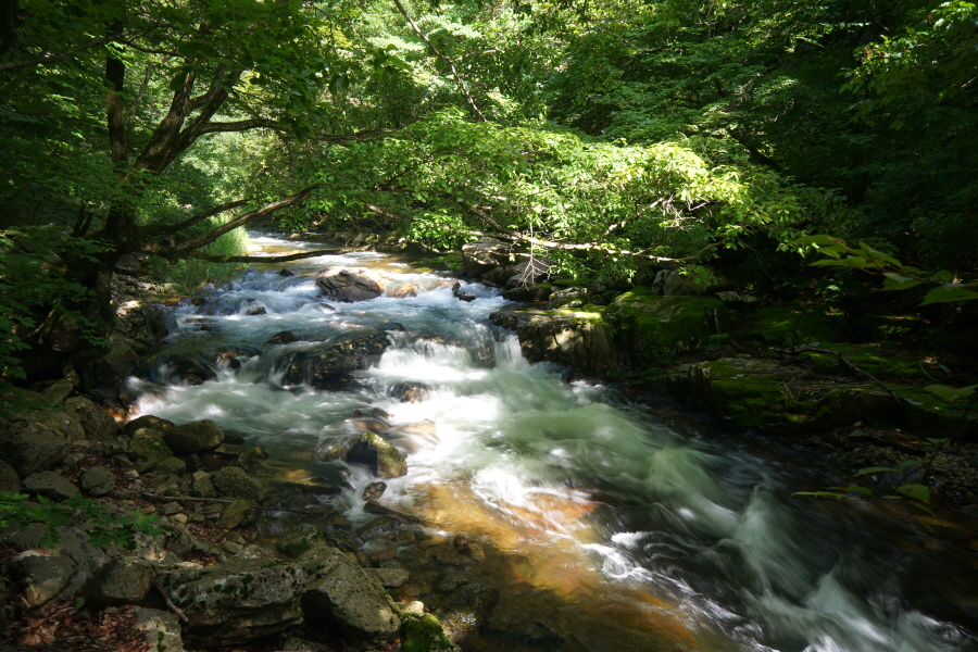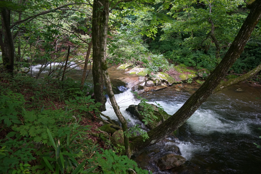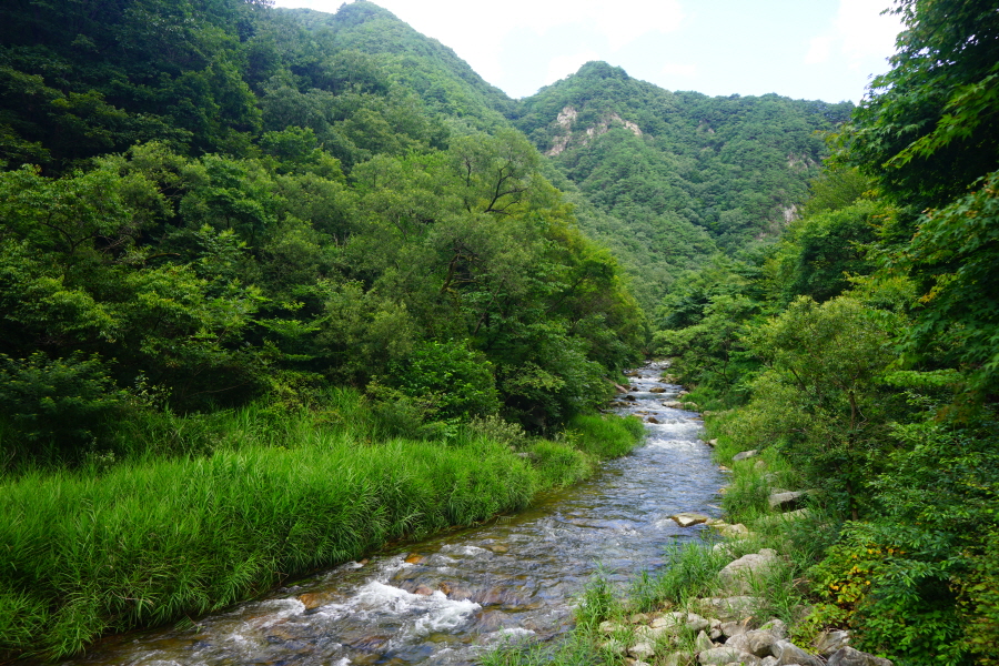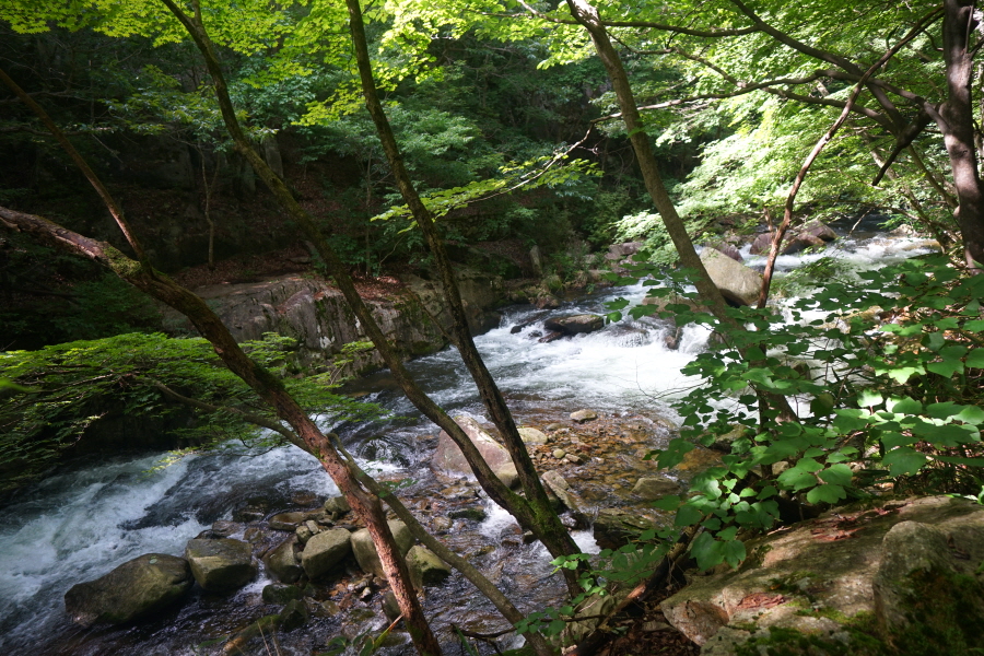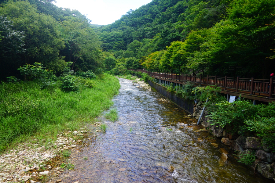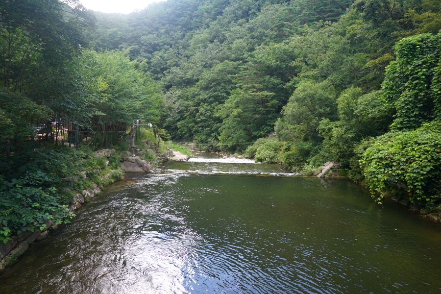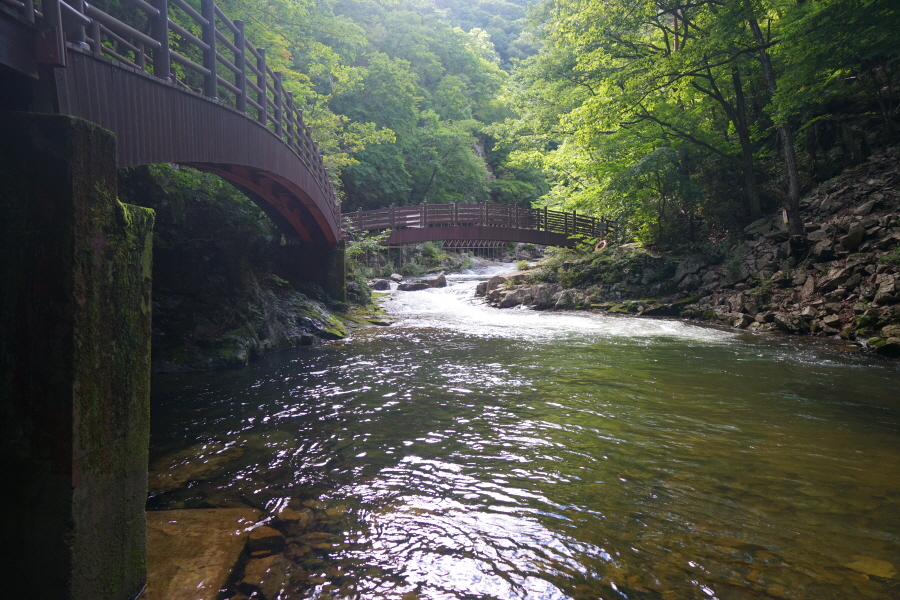 숲 그늘의 걷기 좋은 길을 따라 네 번째 징검다리를 건너 약 50분이면 아래용소에 도착합니다.