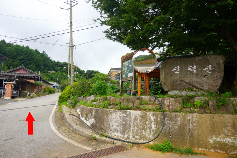 전북 장수군 장수읍 덕산리 밀목재 고개 마루인 신덕산마을정류장에서 출발합니다. ‘신덕산’ 표지석과 사두봉 등산 안내도를 보고 왼쪽 마을길로 들어섭니다.