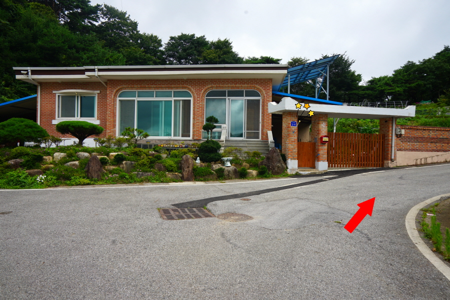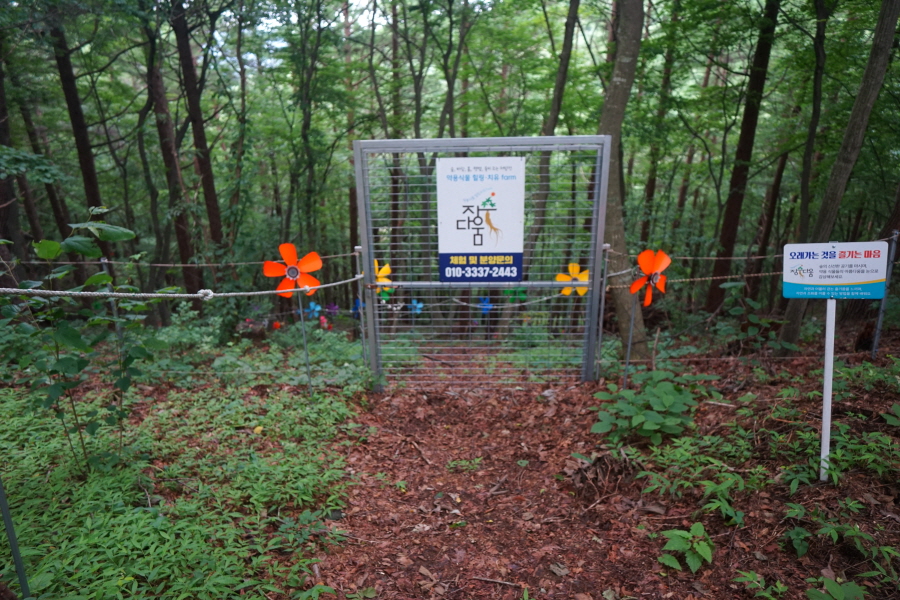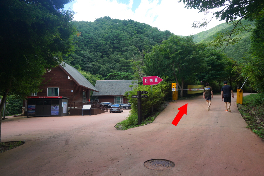 숲속의 집 앞에서 용소(2.4㎞)는 오른쪽 차단기가 쳐진 산책길로 들어섭니다.