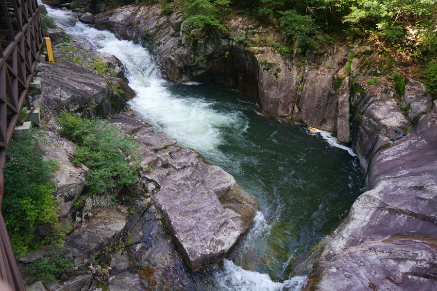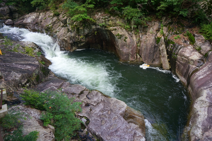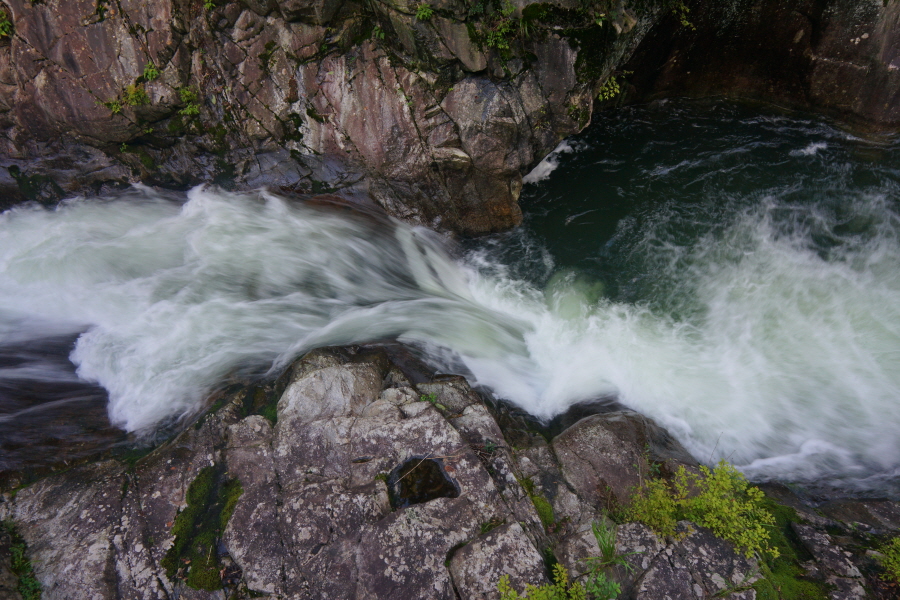 두 용소 중간쯤에 암반이 패이면서 깊이를 알 수 없는 소를 만들었습니다.