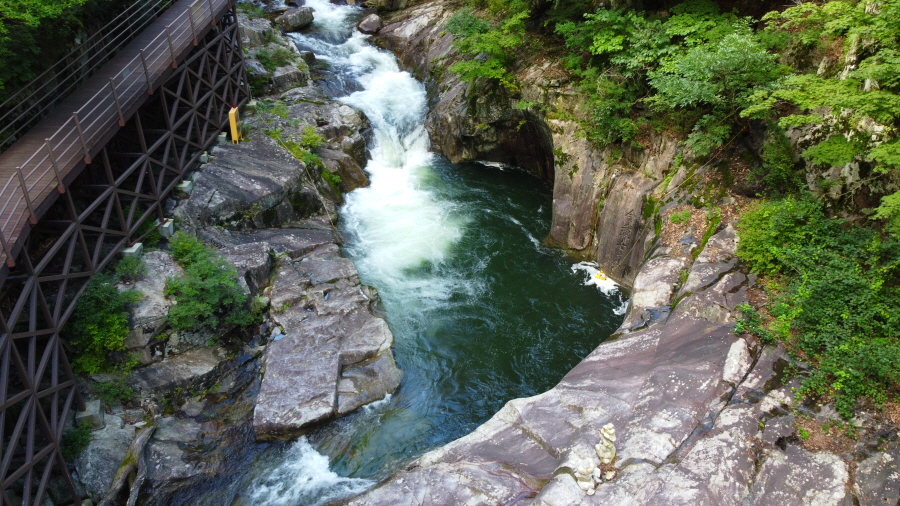 덕산계곡의 비경이 윗 용소까지 이어집니다. 여기에 덱 길이 놓였습니다.