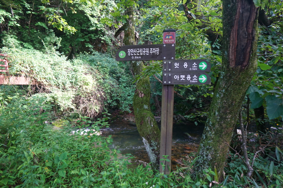 그 속으로 물기둥이 천둥소리를 내며 떨어져 늦더위에 지친 필자의 피로를 한꺼번에 날려 주었습니다. 윗용소에서 7분이면 장안산군립공원주차장에 도착합니다.