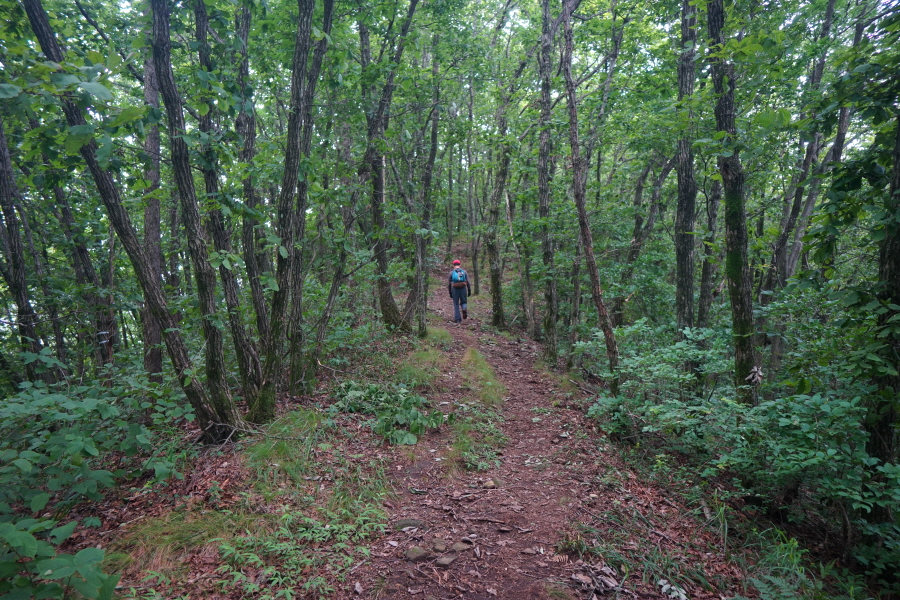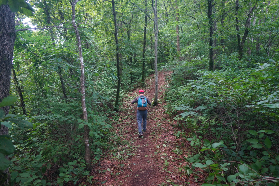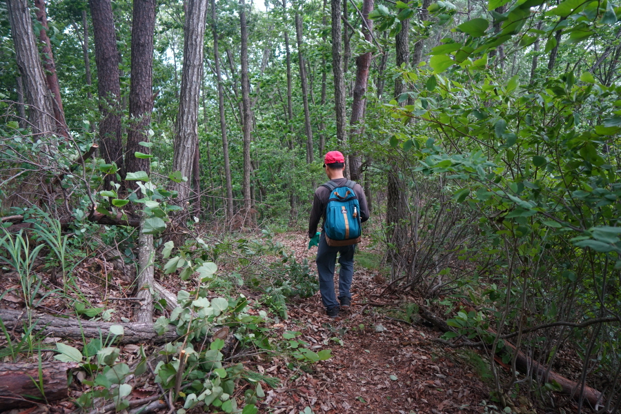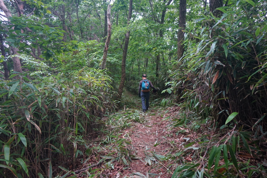 산허리 길을 돌아갑니다. 바구니봉에서 내려오는 길과 만난 뒤 갈림길 한 곳에서 오른쪽 능선을 탑니다.