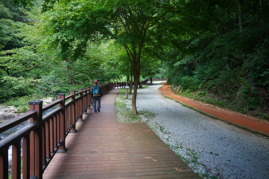9월 중순에 접어 들었지만 아직도 한 낮의 열기는 조금도 그 기세가 꺾이지 않고 있습니다. 찜통더위가 길어지다 보니 필자의 몸과 마음도 지쳐 있어 활력소가 될 만한 산행 코스가 필요했습니다. 가장 우선으로 생각 한 게 쉽게 정상을 찍고 난 뒤 산행 막바지에는 계곡을 끼고 걷는 숲길을 원했습니다.