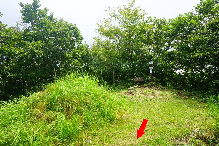 20분이면 산죽 길을 통과해 사두봉에 도착합니다. 정상을 알리는 표찰이 이정표에 붙어 있고 삼각점과 무덤이 있습니다.