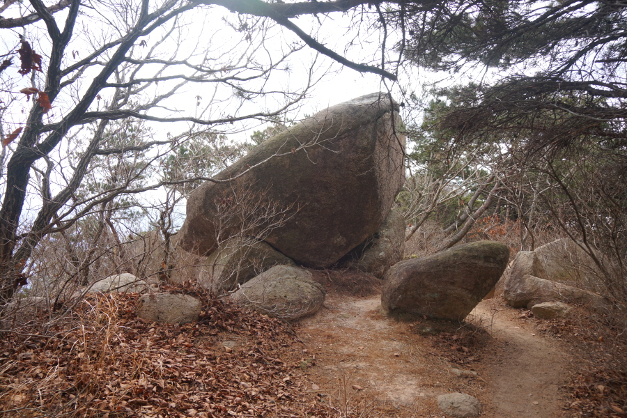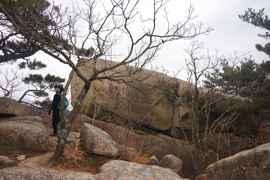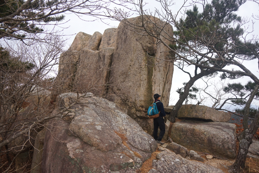 집채 만 한 바위와 상계봉 전망대에서 조망을 즐기며 헬기장에서 약 30분이면 석불사 갈림길에 닿습니다.