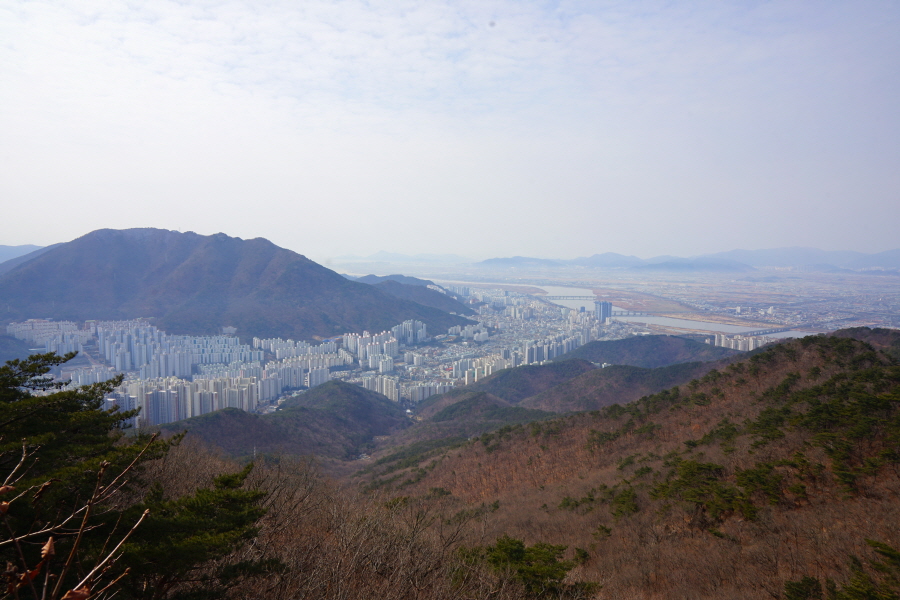 오른쪽에는 태백시 황지에서 1300리를 쉼 없이 달려온 낙동강이 하구언을 통해 남해로 흐릅니다.