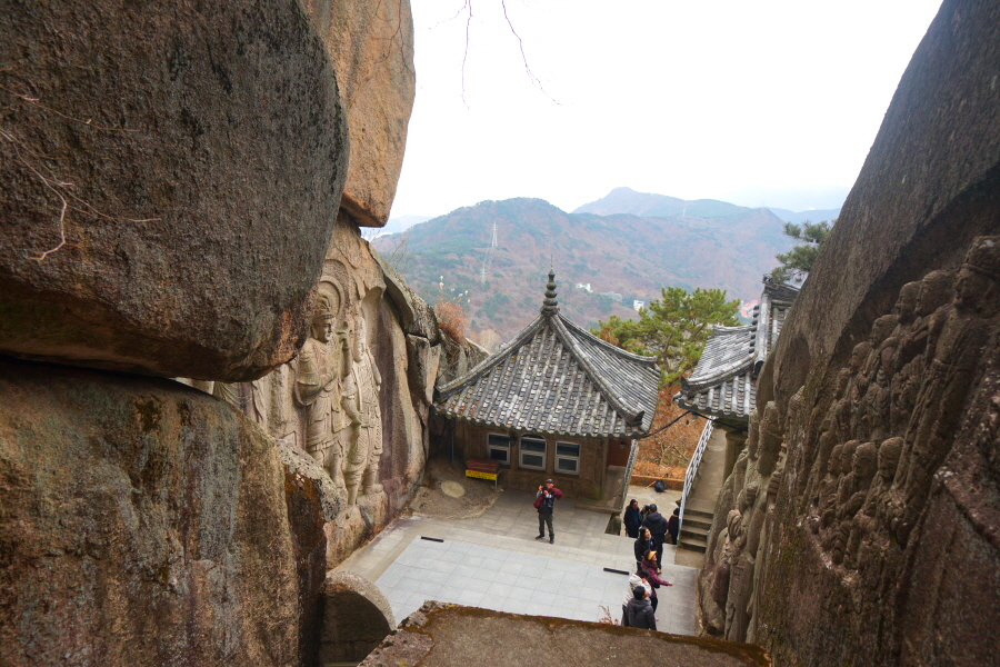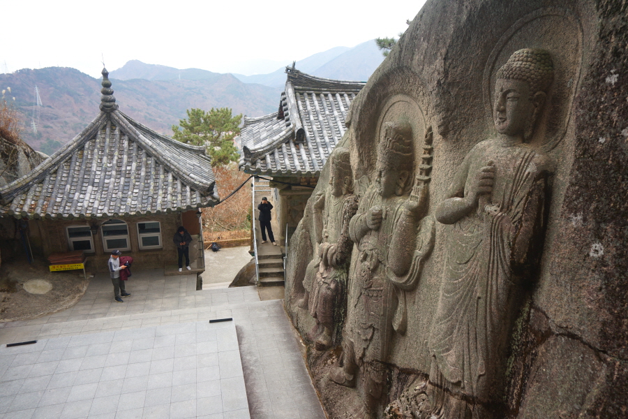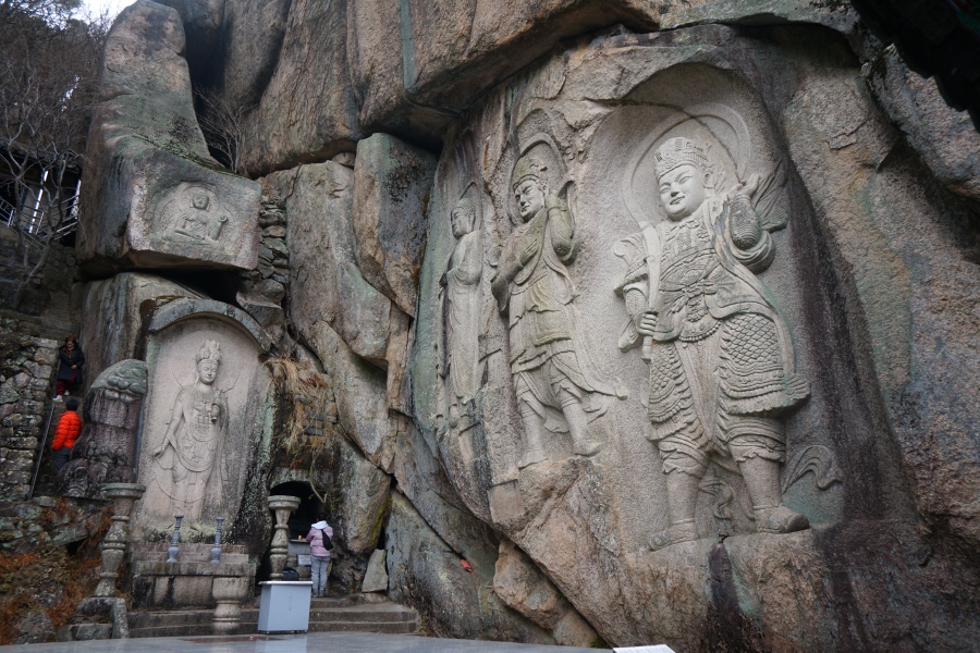 1950년~1960년 사이 신상균, 권정학, 원덕문씨등이 조각한 석불로 좌우로 2구의 사천왕이 비로자나불과 약사여래불을 호위하고 가운데 암벽에는 11면 관세음보살과 미륵존불을 모셨습니다. 독성각 아래 암벽에는 부처님과 보살, 16나한 등을 조성한 우리나라에서 가장 큰 규모의 예술성 높은 마애불상군 사찰입니다.