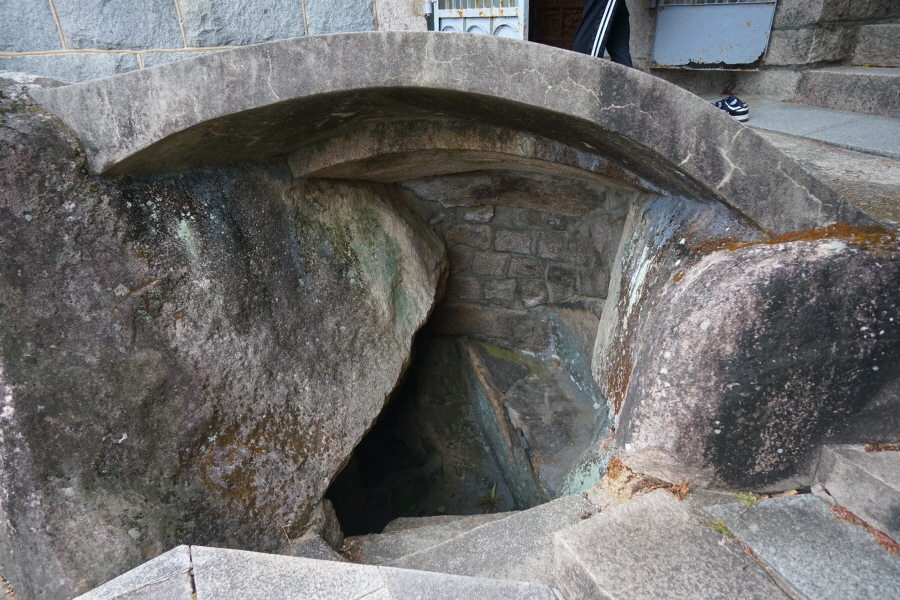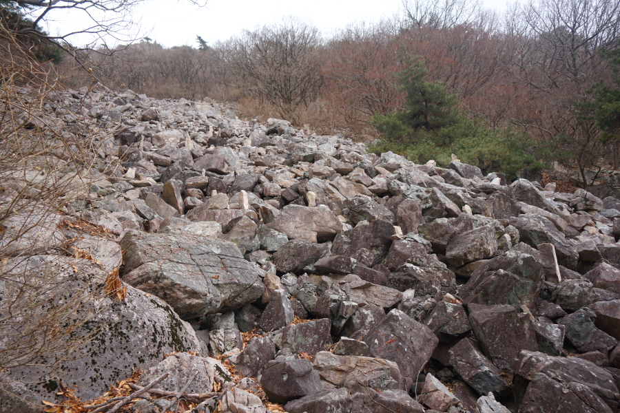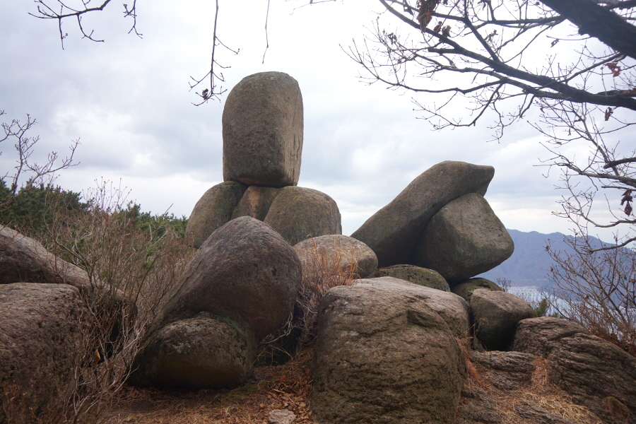덱 계단을 거쳐 장농 크기만 한 바위가 3단으로 동개진 쉼터를 돌아갑니다.