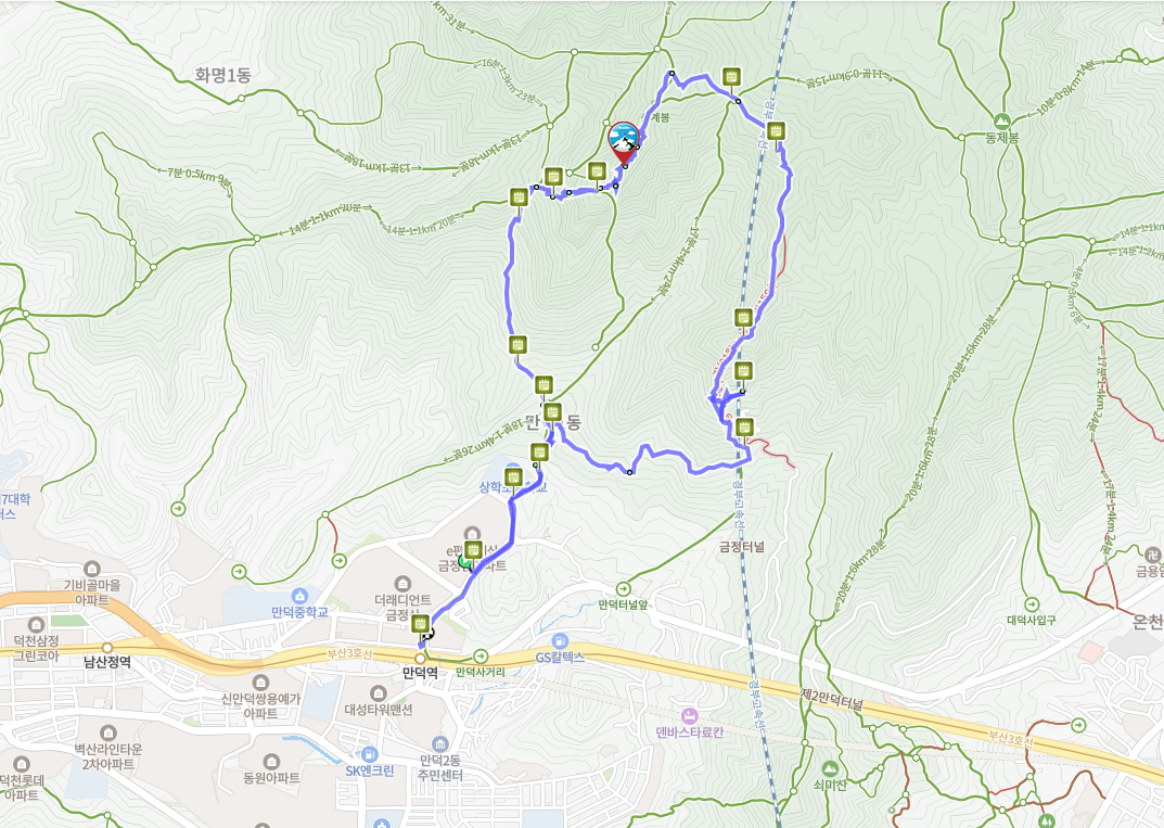 금정산 상계봉은 부산시 수영구 수영역과 강서구 대저역 간을 운행하는 도시철도 3호선 만덕역에서 내려 2번과 4번 출입구로 나가면 바로 산행을 시작합니다.
