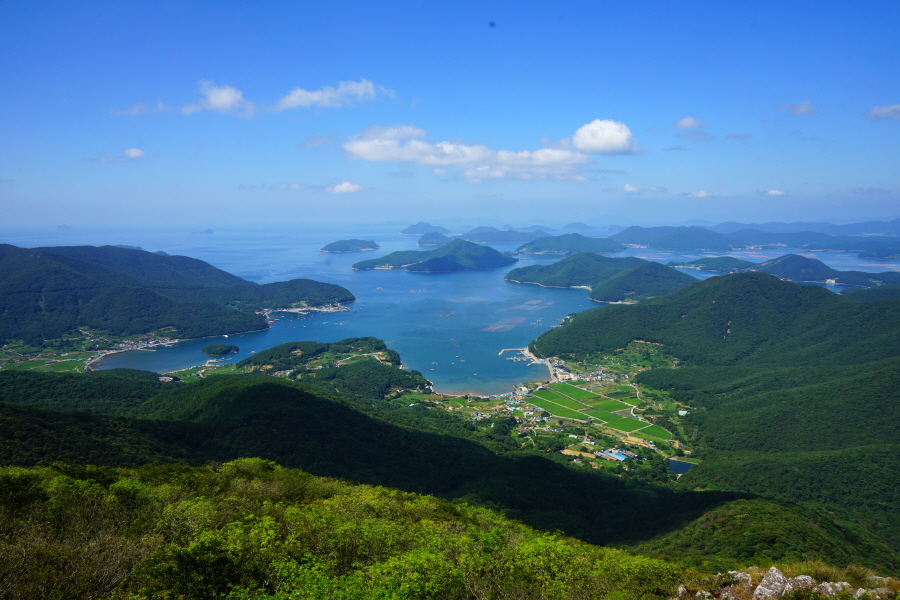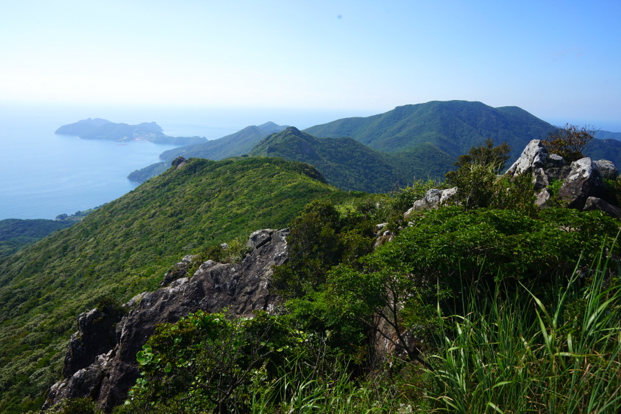 우리나라의 토종 마늘을 보는 듯 암팡진 모습을 했습니다. 서쪽으로 한려해상국립공원인 다도해가 펼쳐지고 노자산은 손에 잡힐 듯 가깝습니다.