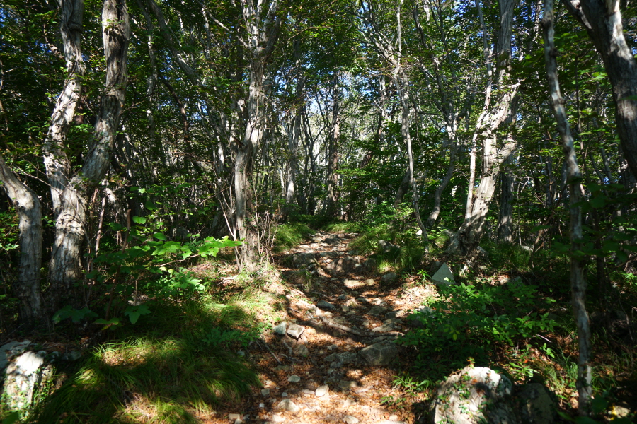 단풍나무 참나무 노각나무 등 활엽수가 우거진 숲 그늘에 초록의 그늘 사초가 깔린 포근한 산길이 이어집니다.