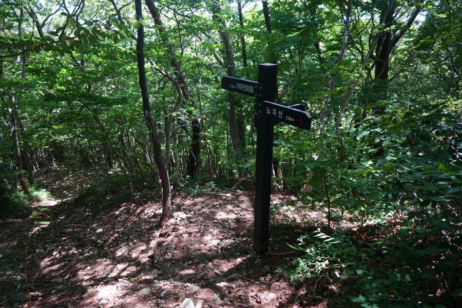 앞서 삼거리로 되돌아가 노자산(1.4㎞)은 능선을 직진합니다.