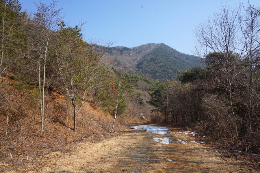 통명사 임도(0.6㎞) 이정표에서 왼쪽이며,
