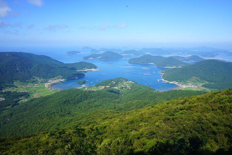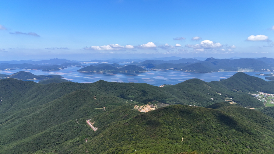 서쪽으로 한려해상국립공원인 다도해가 펼쳐지고 노자산은 손에 잡힐 듯 가깝습니다.