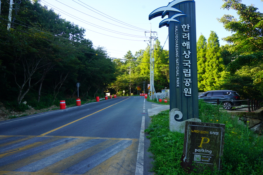 입구로 나와 오른쪽 도로를 따라 거제파노라마케이블카 입구 회전교차로를 돌아 15분이면 노자산 주차장에 도착합니다.