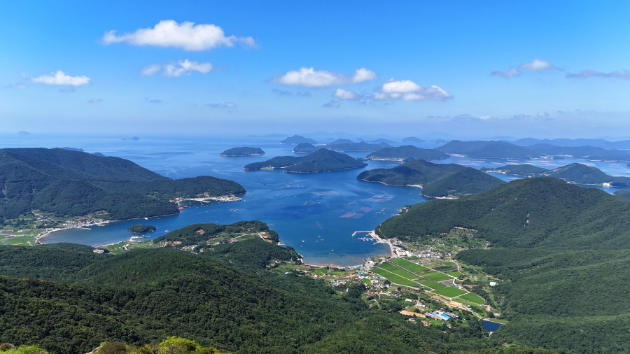 서쪽 발아래 탑포항과 율포항이 하트 모양을 했습니다.