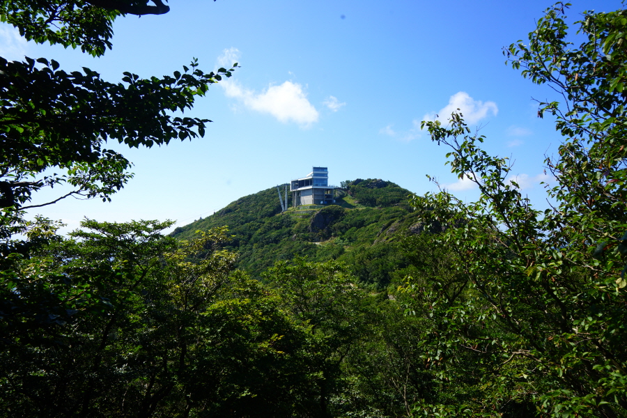 하산은 북쪽 덱 아래 산불초소에서 해양사(2.0㎞)·자연휴양림(1.0㎞)으로 직진합니다.