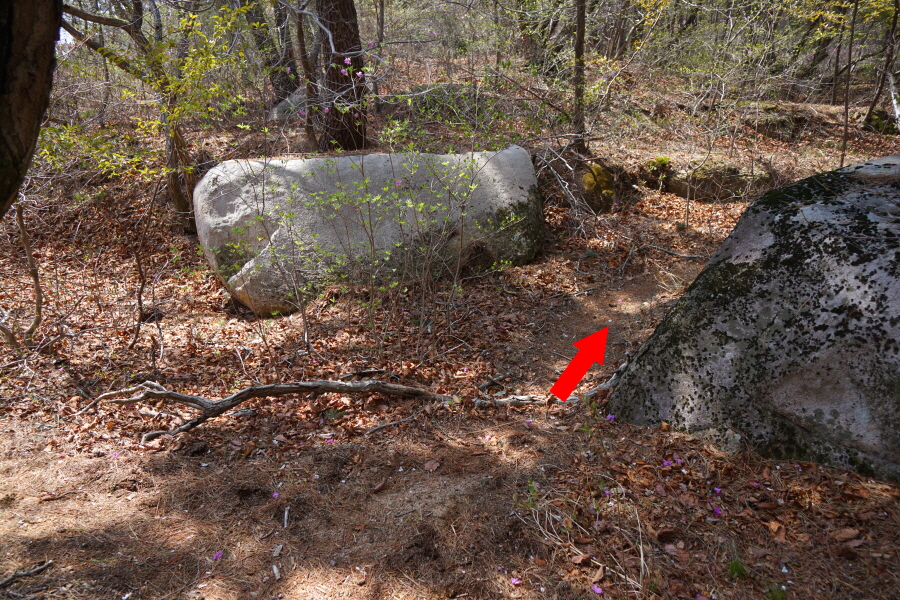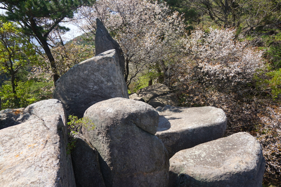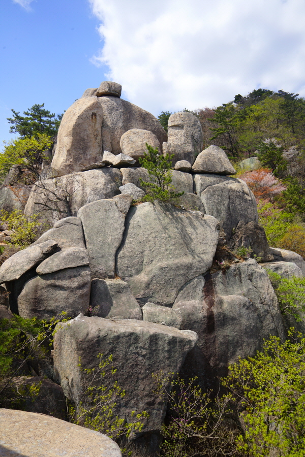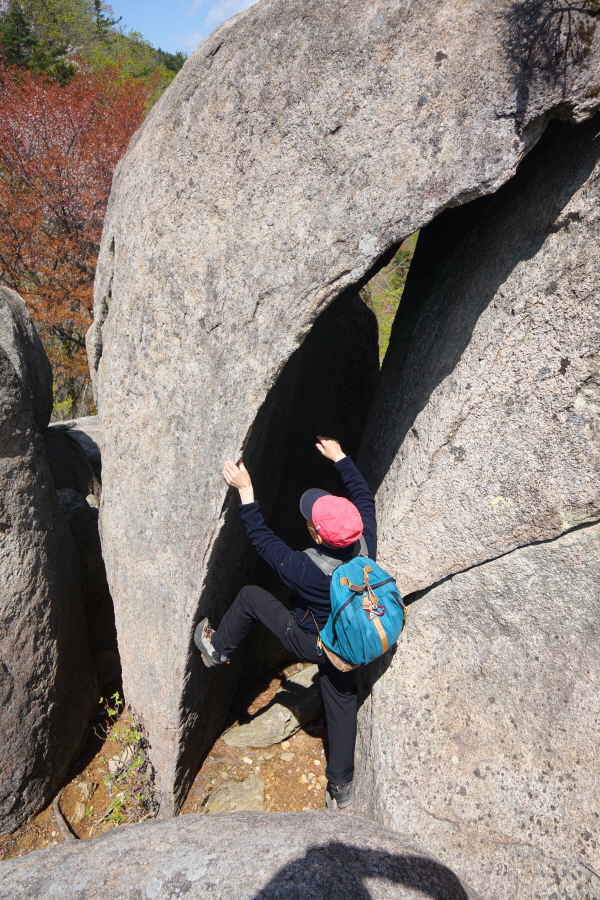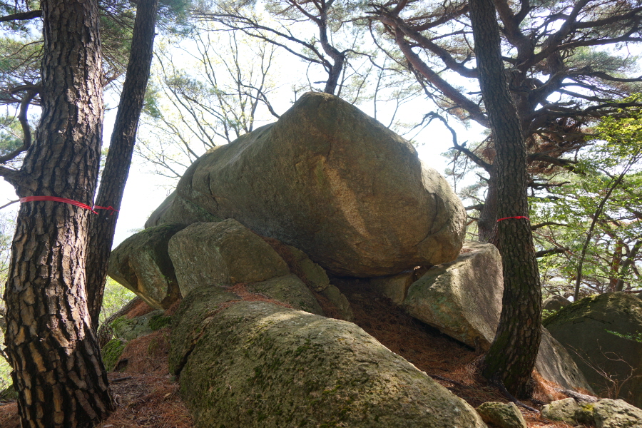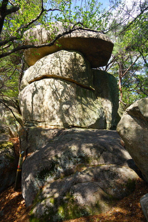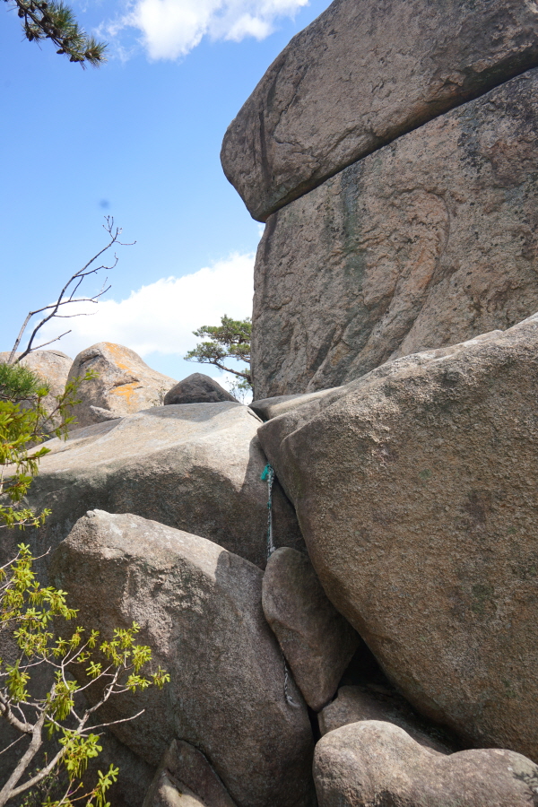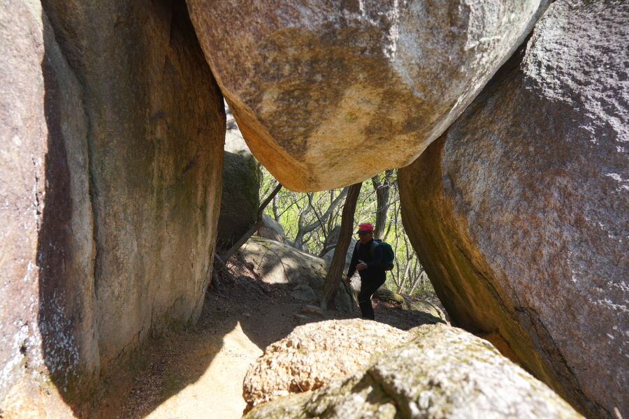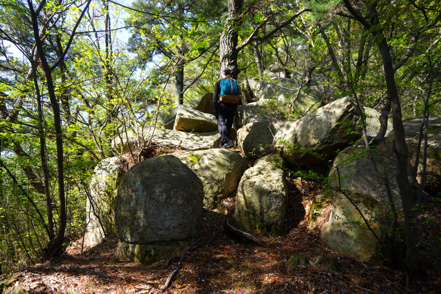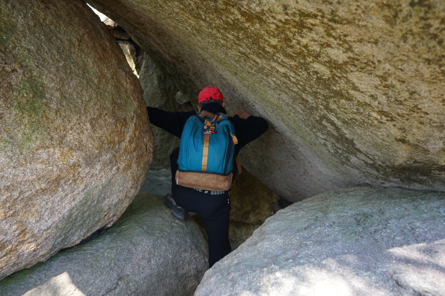 15분쯤이면 작은 바위가 널찍한 바위를 받치고 있는 게 꼭 고인돌을 닮았습니다. 이런 모양을 한 바위가 잇따라 나오고 본격적인 바윗길이 시작됩니다.