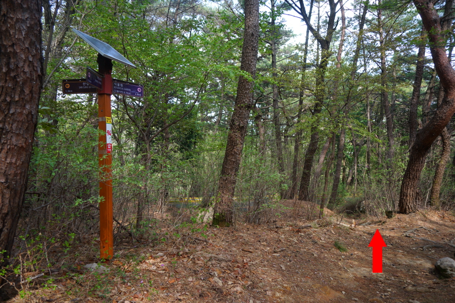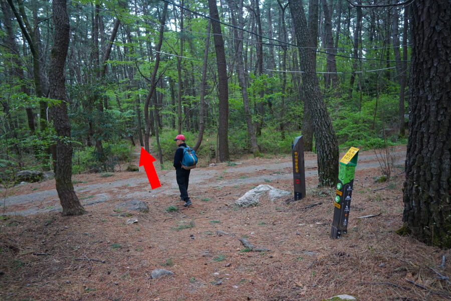 광명사버스정류장에 내려 도로를 건너갑니다. 광명사 일주문을 보고 오른쪽에 규림요양병원과 사이 계단을 올라 골목을 빠져 나갑니다. 아름드리 소나무 숲길과 만나며 4, 5분이면 이리저리 산길이 어지럽게 나 있습니다. 왼쪽 방향으로 갑니다.