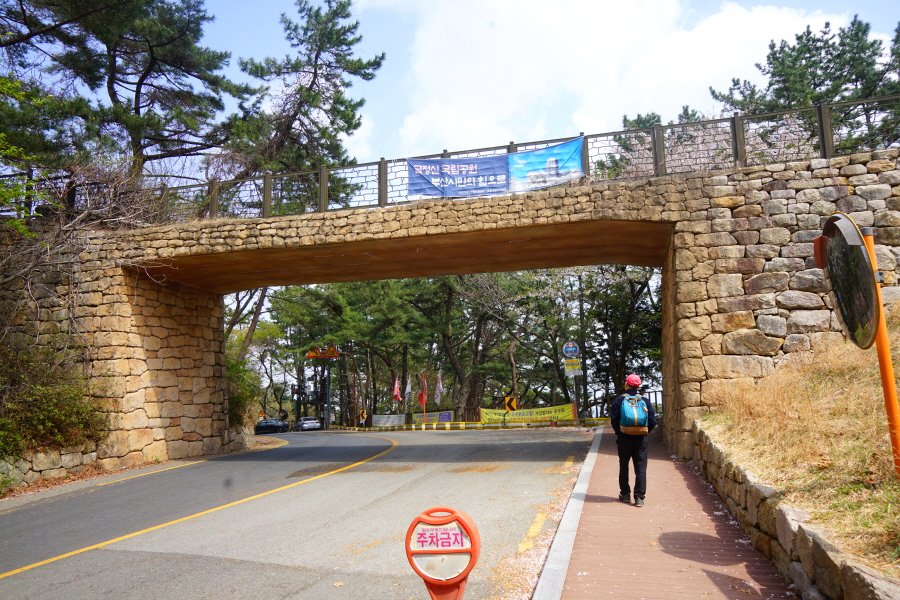 10여 분이면 찻길인 산성고개에 떨어집니다. 오른쪽 굴다리를 통과하면 203번 남문버스정류장입니다. 여기서 산행을 끝내고 시내버스를 타도됩니다.