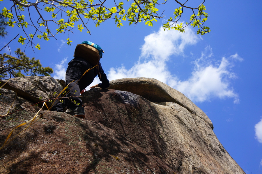 금정산(金井山·800.8m)은 부산 산악인에게는 보석같은 존재입니다. 암벽 등반을 하는 산꾼이나 종주 산행을 즐기는 등산동호인을 모두 아우르는 산이기 때문입니다. 대륙암 나비암 무명암 부채암 준행암 등 암장은 암벽 장비를 갖춘 전문 산꾼이 찾는다면, 하늘릿지 베틀릿지 아기자기 능선 등은 워킹(walking) 산행을 하는 등산객도 바위를 타는 릿지(ridge) 산행을 즐길 수 있는 코스입니다. 이제 매서웠던 겨울 동장군도 물러나고 만물이 소생하는 봄이 찾아왔습니다. 봄 산행하면 진달래 철쭉을 찾아 떠나는 꽃 산행를 많이 하나, 이맘 때 암릉을 타며 봄기운을 느껴보는 산행을 해도 괜찮습니다. 필자는 얼음장 같이 차가웠던 바위가 햇볕을 받아 데워져 따뜻한 감촉이 두 손에 전해지는 쾌감을 느끼며 바위 타는 재미에 푹 빠져 보는 '금정산 아기자기 능선'을 소개합니다.
