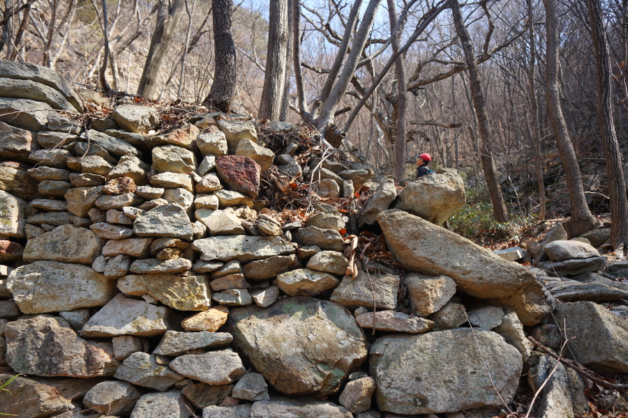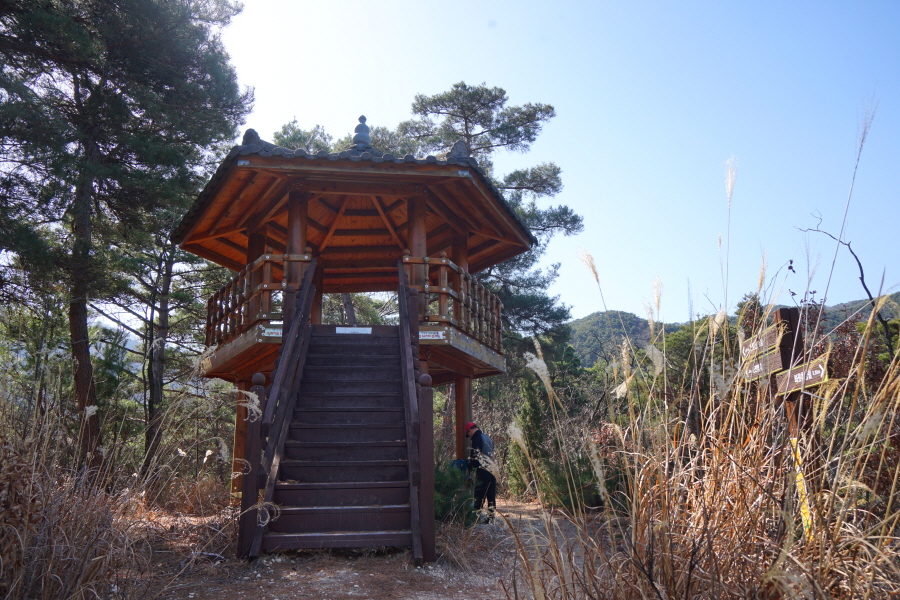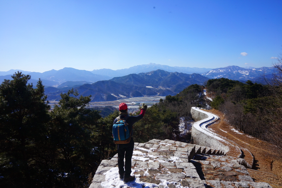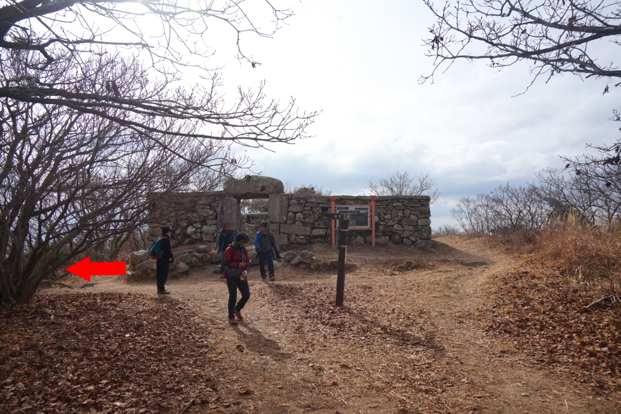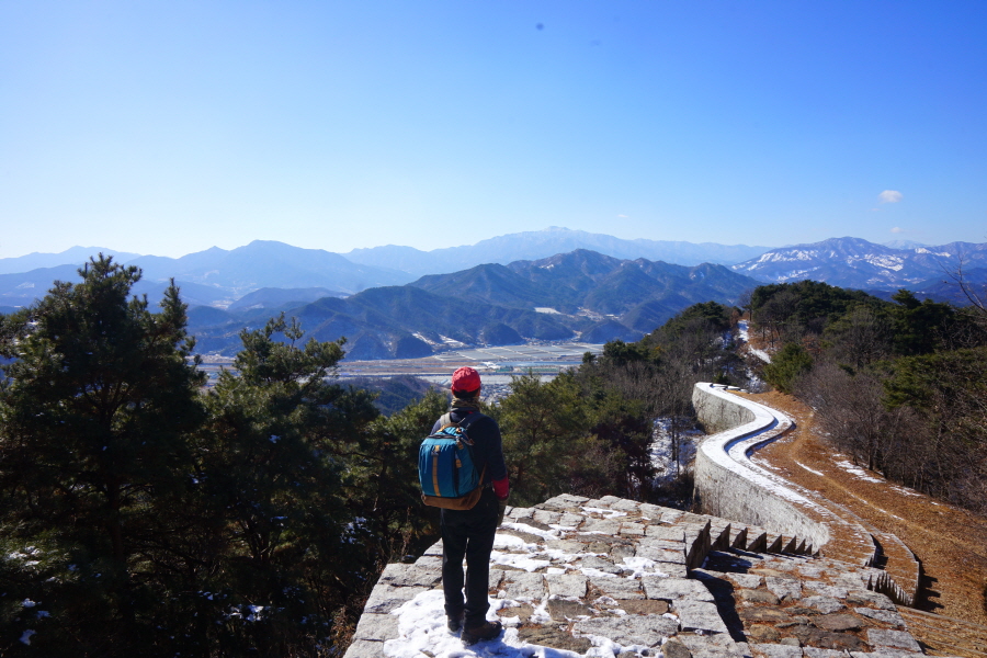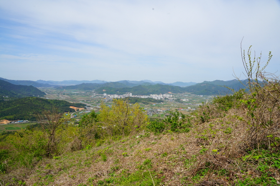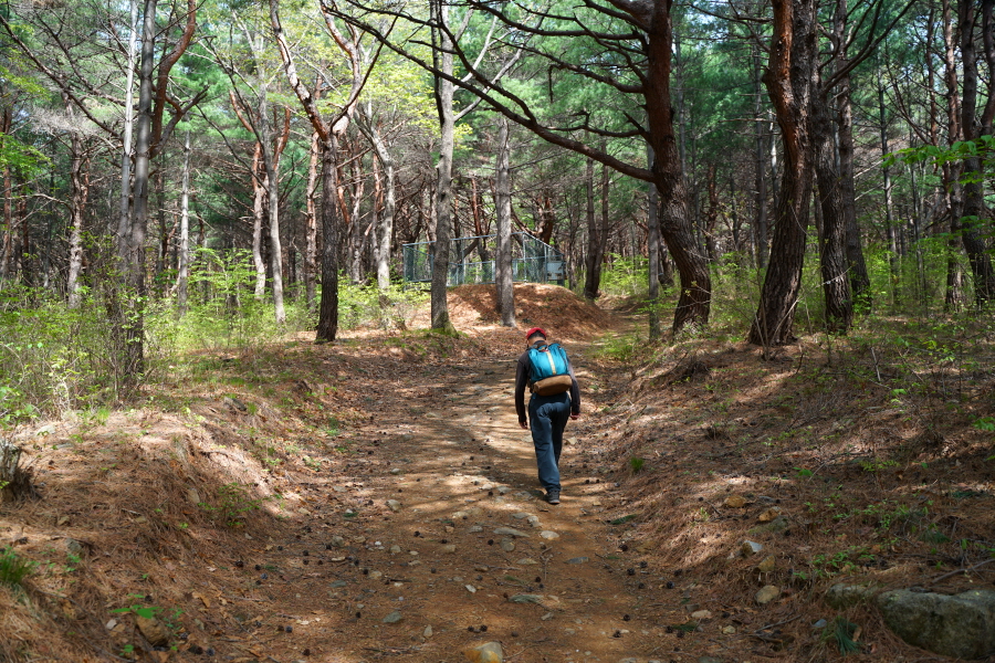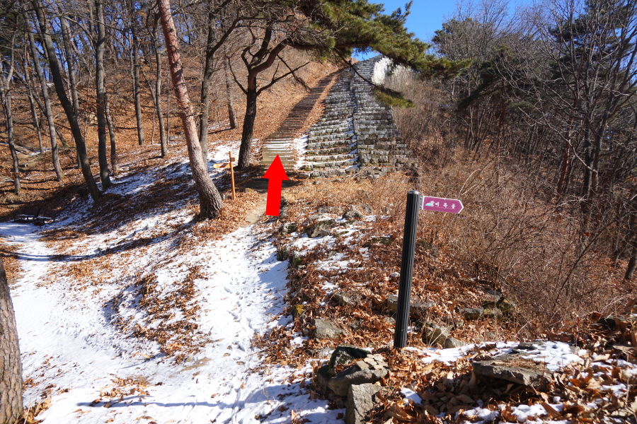 명활성 탐방로는 선덕여왕의 부왕이었던 진평왕릉 주차장에서 출발한합니다. 양지마을을 빠져나가면 명활성 탐방로 이정표가 서 있습니다. 오른쪽 3발굴지(2.4㎞)로 향합니다. 구릉 같은 완만한 산길이 이어지며 탐방로를 따라 두툼하게 생긴 긴 언덕이 무너진 명활성 흔적입니다. 일부 산성과 북문지는 발굴해 복원한 상태입니다. 3 발굴지에 서면 조망이 열립니다. 보문댐과 북천변의 동궁원이 보이며, 멀리 낙동정맥 능선과 천북면 서산의 풍력단지가 펼쳐집니다.