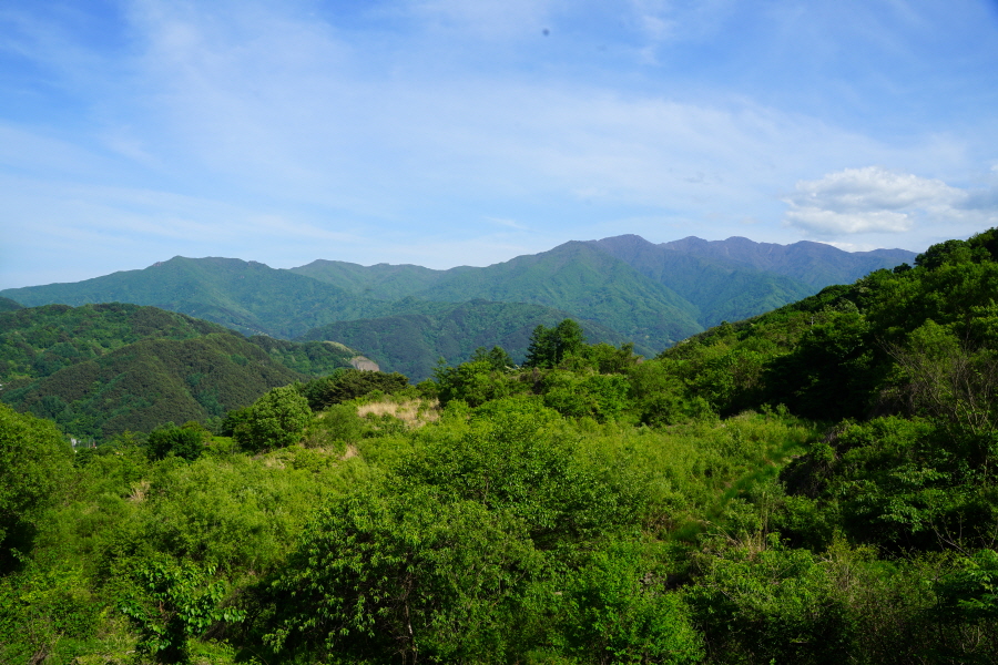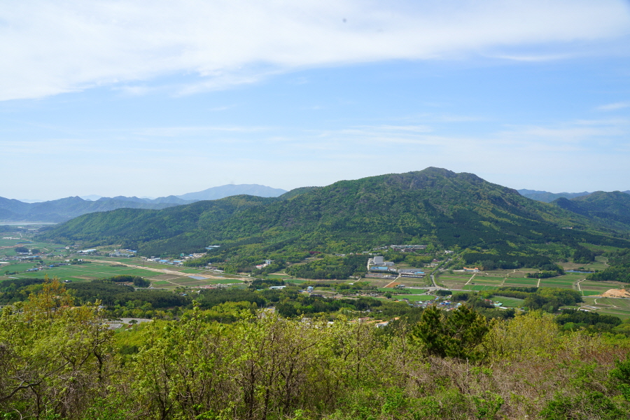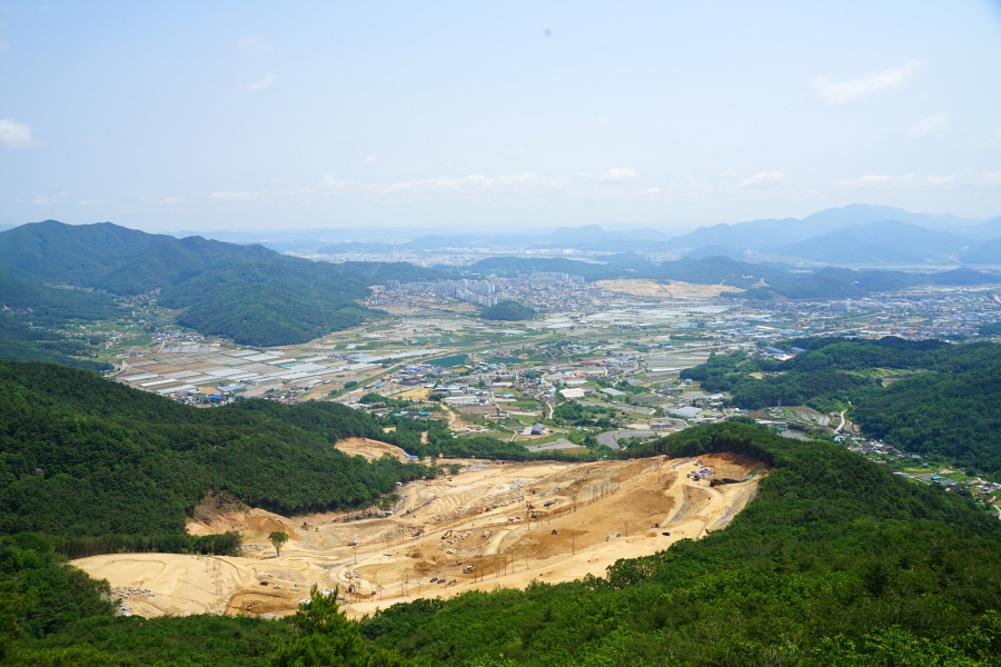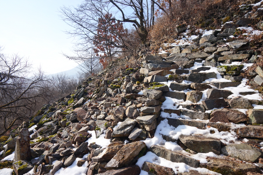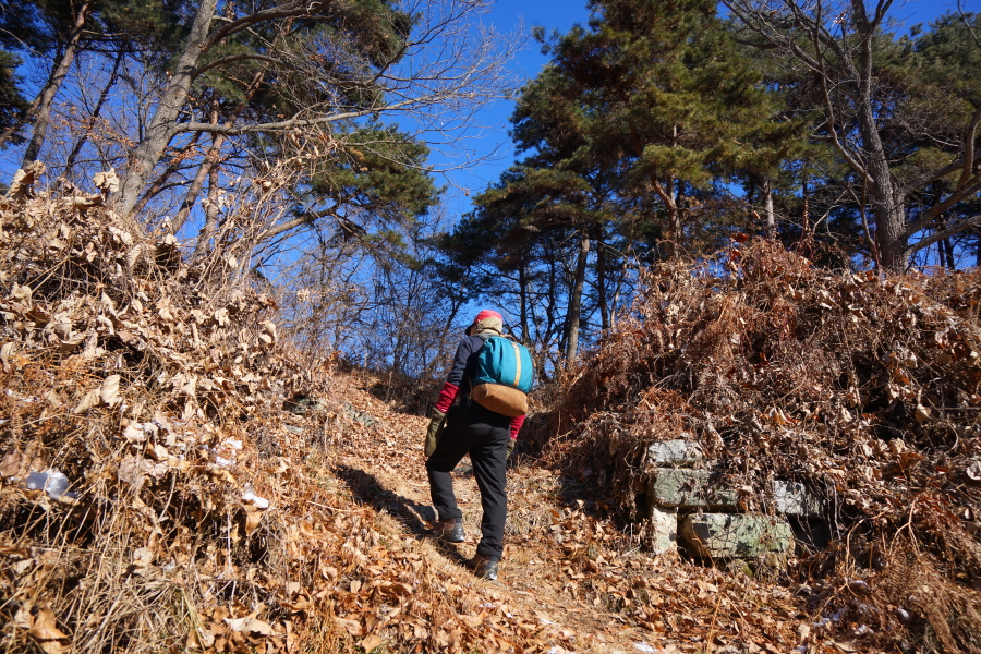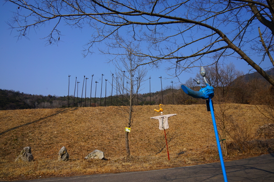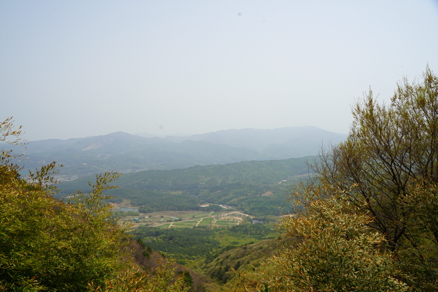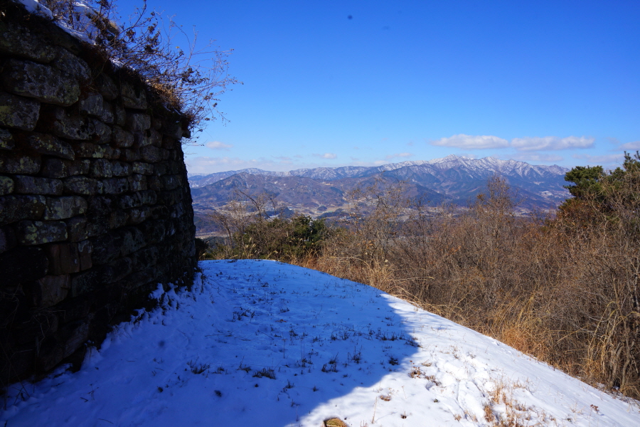 명활성 탐방로는 선덕여왕의 부왕이었던 진평왕릉 주차장에서 출발한합니다. 양지마을을 빠져나가면 명활성 탐방로 이정표가 서 있습니다. 오른쪽 3발굴지(2.4㎞)로 향합니다. 구릉 같은 완만한 산길이 이어지며 탐방로를 따라 두툼하게 생긴 긴 언덕이 무너진 명활성 흔적입니다. 일부 산성과 북문지는 발굴해 복원한 상태입니다. 3 발굴지에 서면 조망이 열립니다. 보문댐과 북천변의 동궁원이 보이며, 멀리 낙동정맥 능선과 천북면 서산의 풍력단지가 펼쳐집니다.