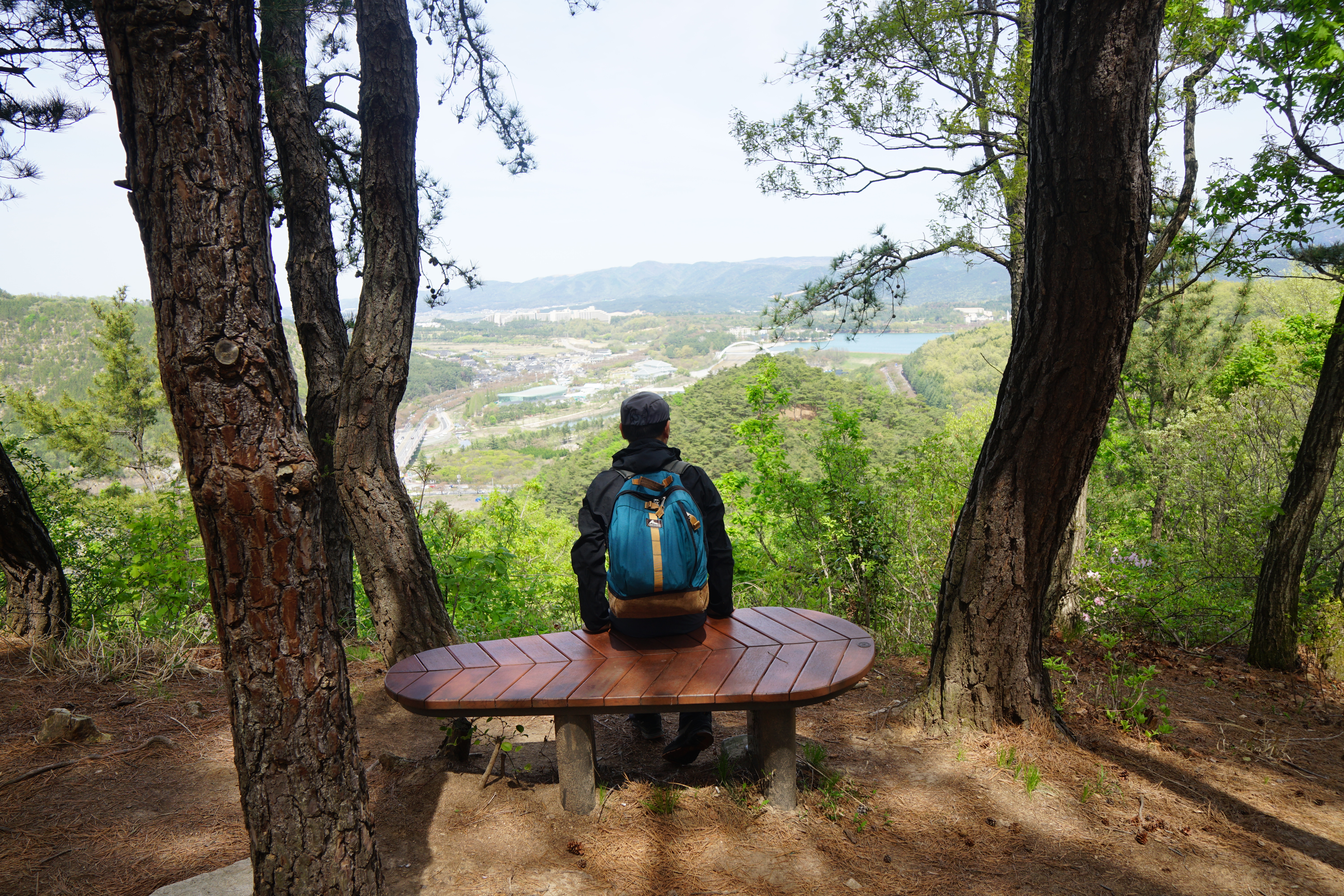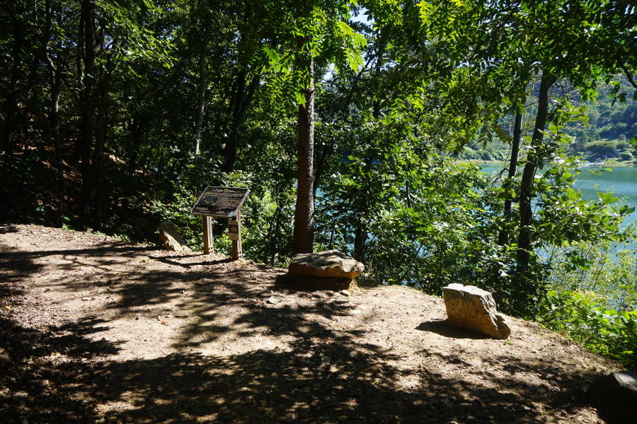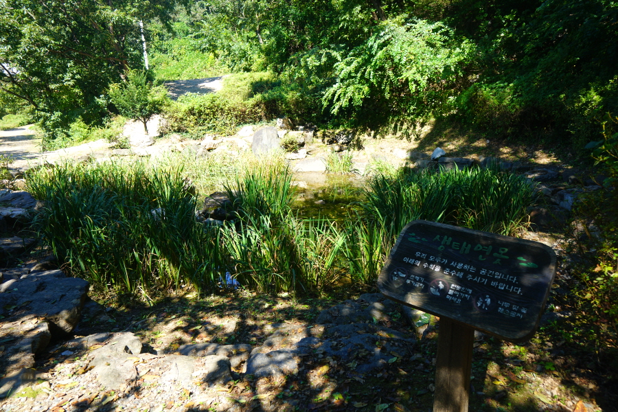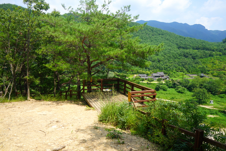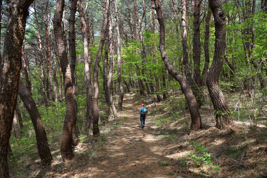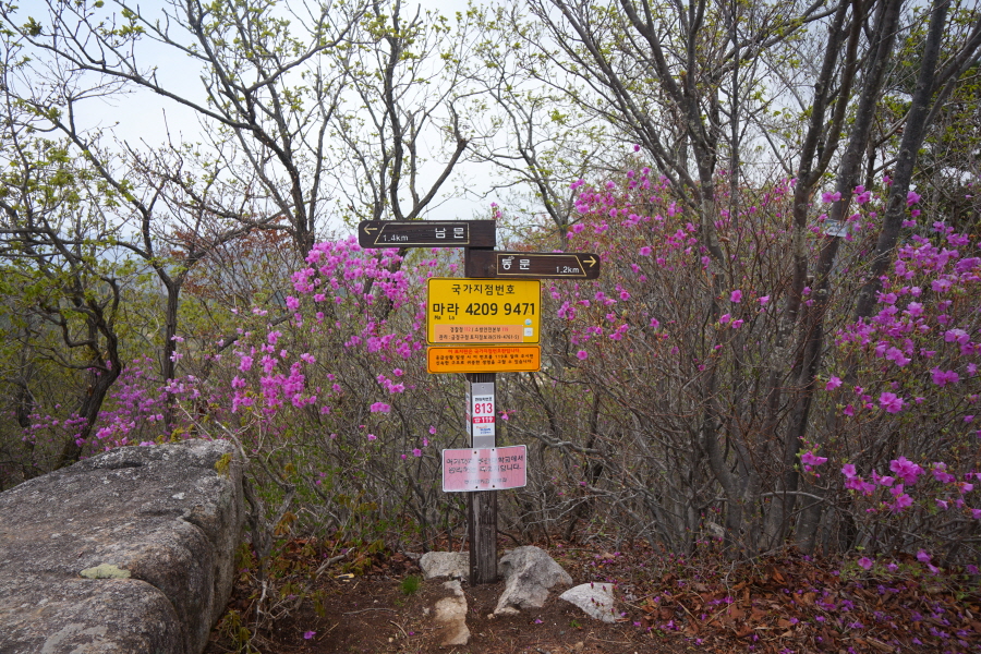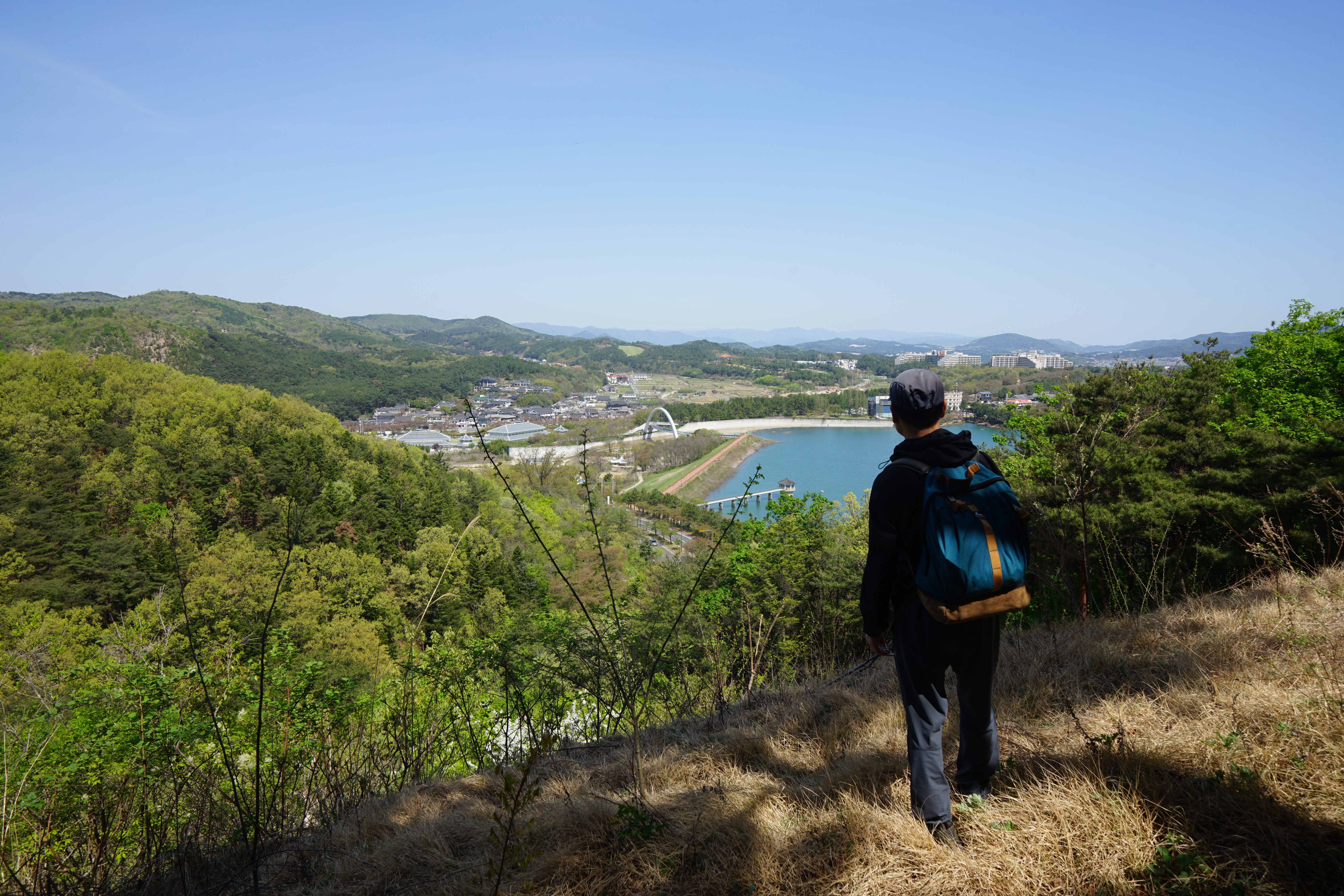 명활성 탐방로는 선덕여왕의 부왕이었던 진평왕릉 주차장에서 출발한합니다. 양지마을을 빠져나가면 명활성 탐방로 이정표가 서 있습니다. 오른쪽 3발굴지(2.4㎞)로 향합니다. 구릉 같은 완만한 산길이 이어지며 탐방로를 따라 두툼하게 생긴 긴 언덕이 무너진 명활성 흔적입니다. 일부 산성과 북문지는 발굴해 복원한 상태입니다. 3 발굴지에 서면 조망이 열립니다. 보문댐과 북천변의 동궁원이 보이며, 멀리 낙동정맥 능선과 천북면 서산의 풍력단지가 펼쳐집니다.