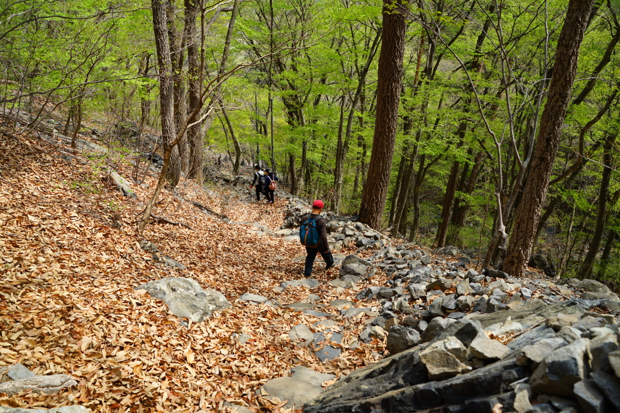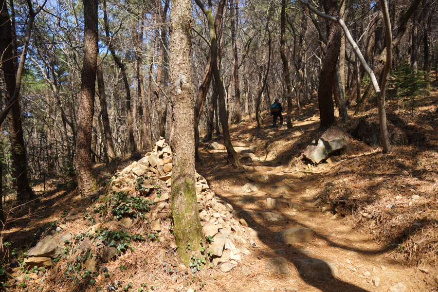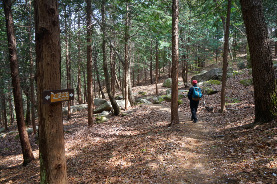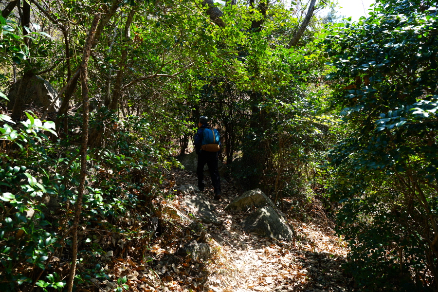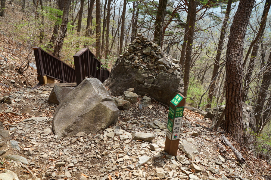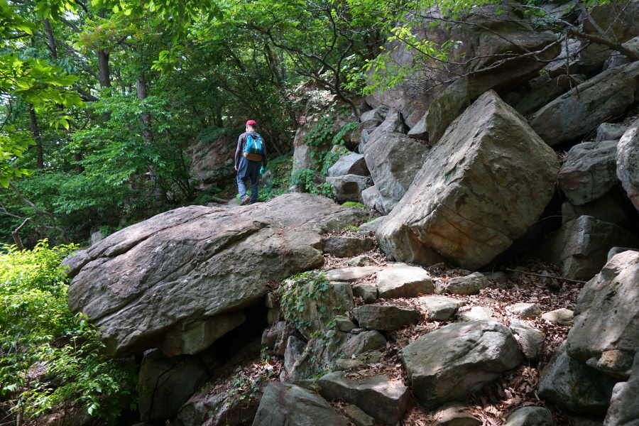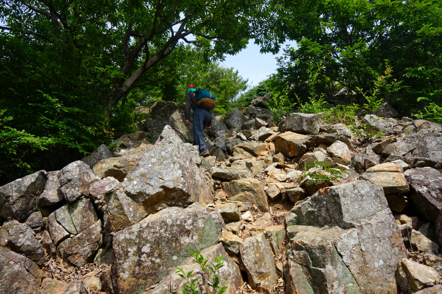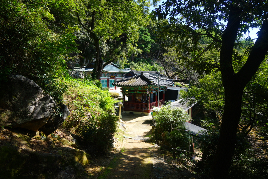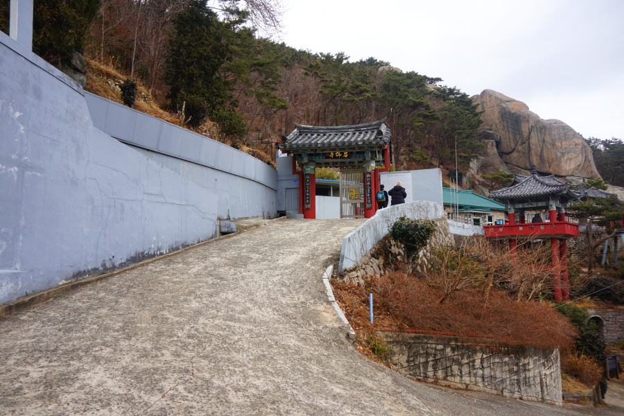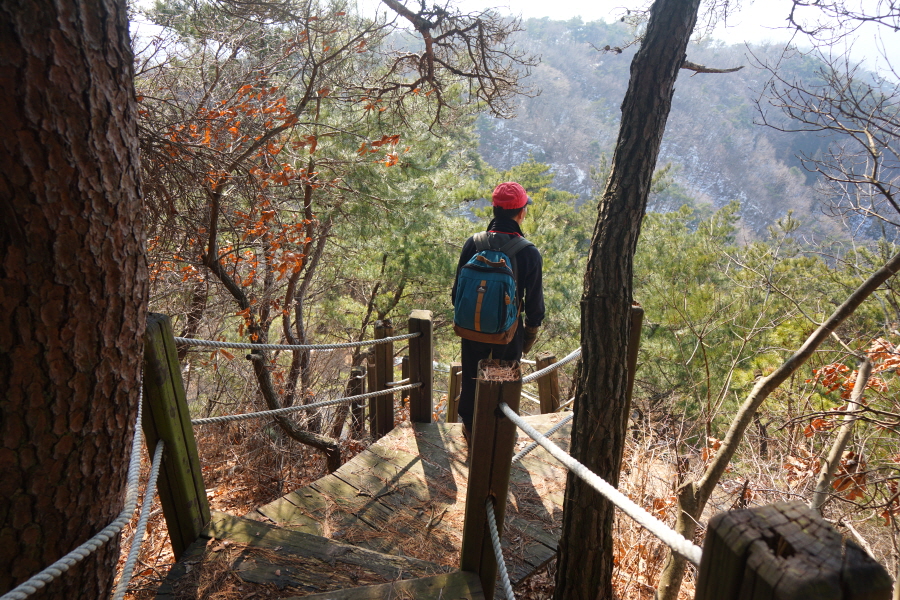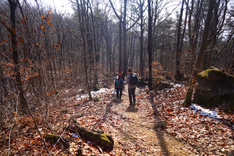 금정산의 다양한 바위 코스 중에서 일반 등산객도 쉽게 암릉에 접근해 바위를 탈 수 있는 게 금정구 장전동 광명사 입구에서 출발하는 아기자기 능선입니다. 광명사에서 20분 남짓 제 2망루 방향으로 흙길 능선을 오르면 바위길이 시작합니다. 고인돌 바위, 포개진 바위, 남근석을 닮은 선바위, 남해 금산의 쌍홍문을 닮은 구멍이 두개 뚫린 바위, 부처님이 참선 했을 법한 광배를 두른 좌선대 등 천태만상(千態萬象)의 다양한 바위가 나타납니다.