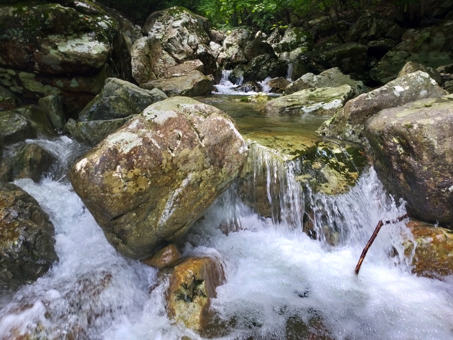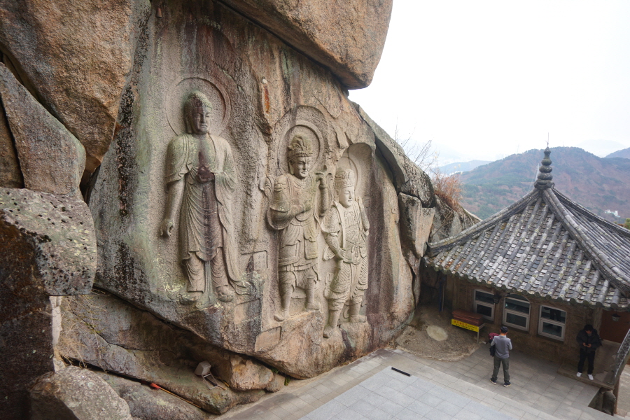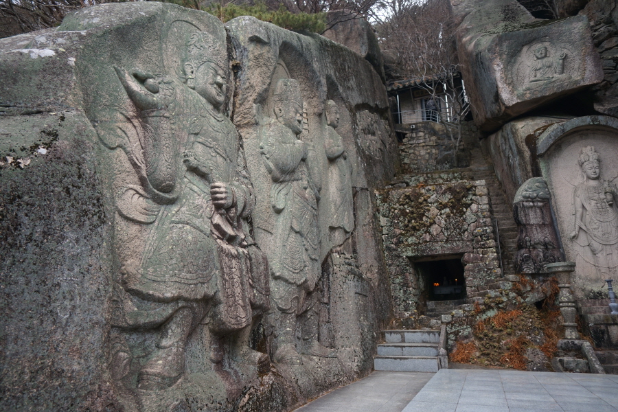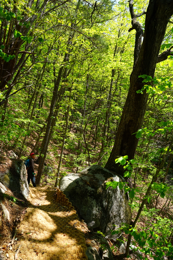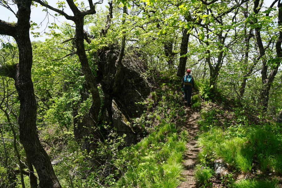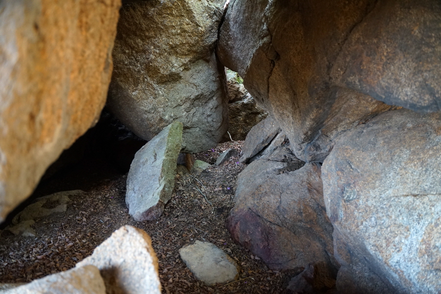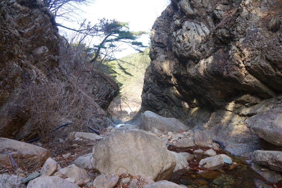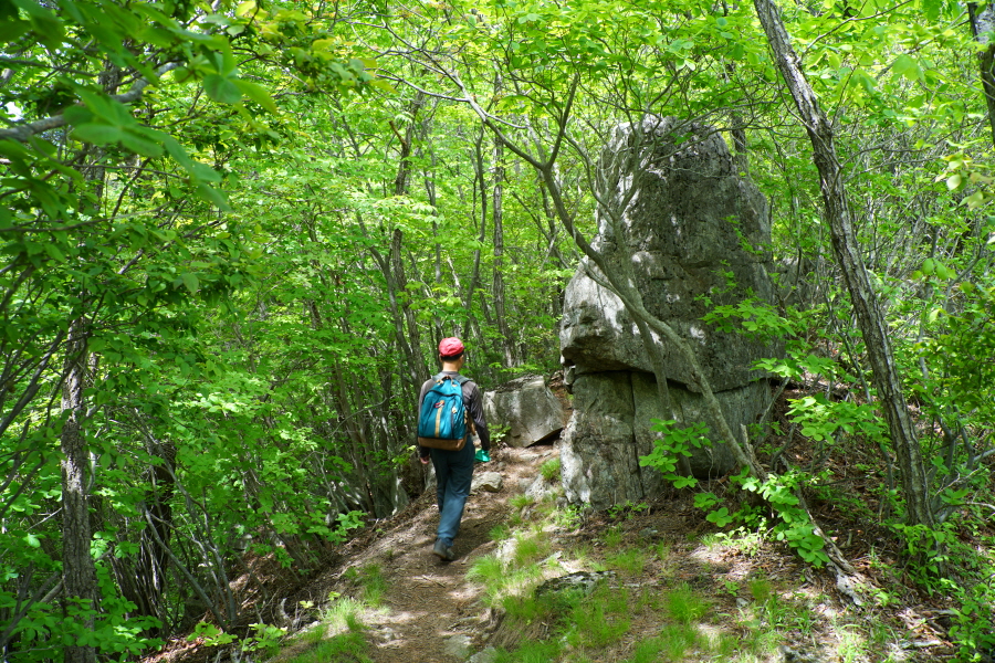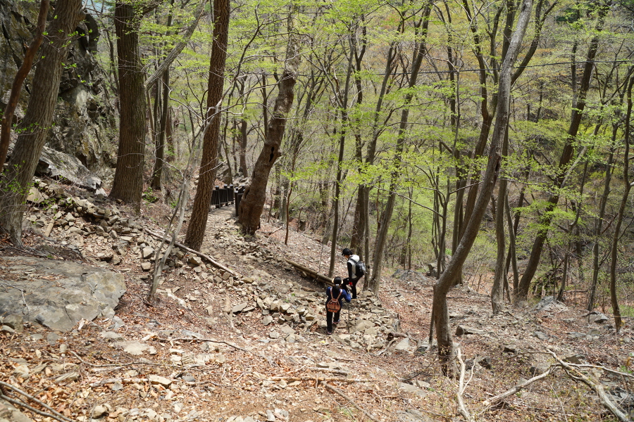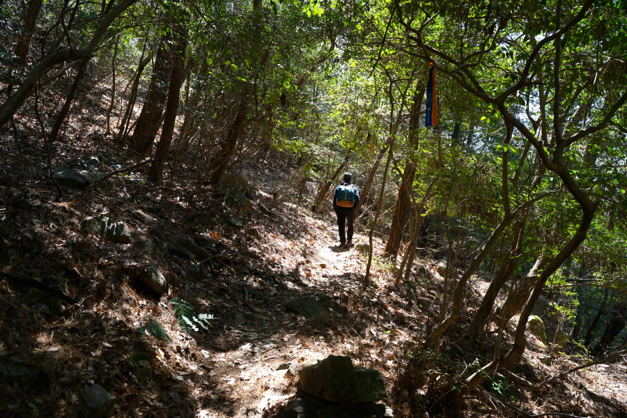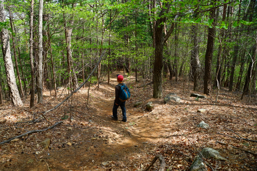 금정산의 다양한 바위 코스 중에서 일반 등산객도 쉽게 암릉에 접근해 바위를 탈 수 있는 게 금정구 장전동 광명사 입구에서 출발하는 아기자기 능선입니다. 광명사에서 20분 남짓 제 2망루 방향으로 흙길 능선을 오르면 바위길이 시작합니다. 고인돌 바위, 포개진 바위, 남근석을 닮은 선바위, 남해 금산의 쌍홍문을 닮은 구멍이 두개 뚫린 바위, 부처님이 참선 했을 법한 광배를 두른 좌선대 등 천태만상(千態萬象)의 다양한 바위가 나타납니다.