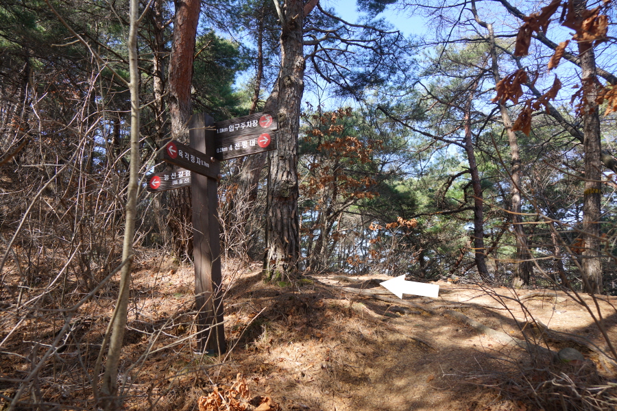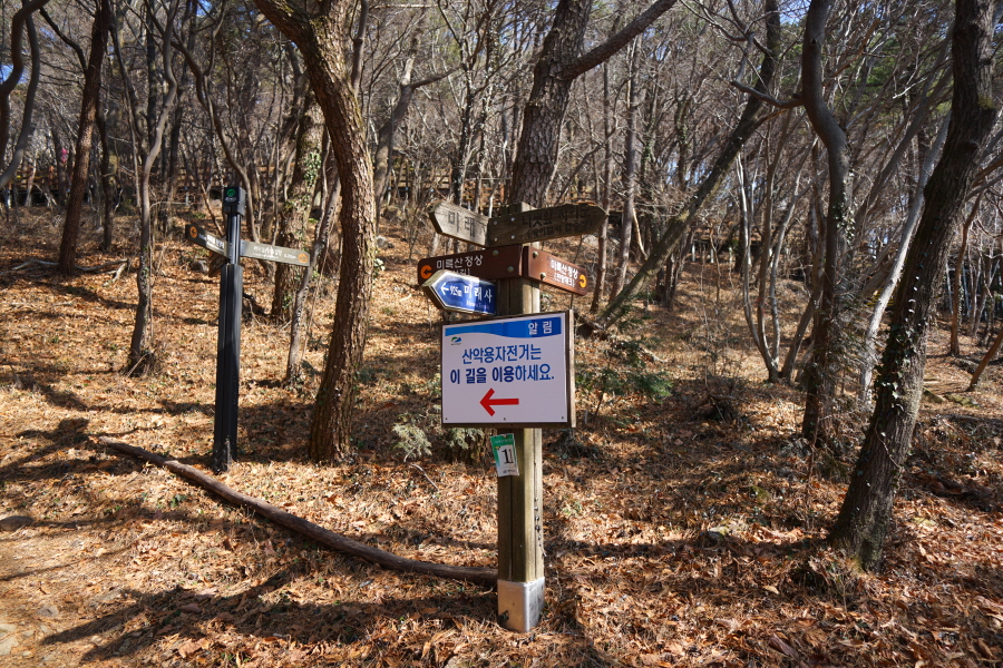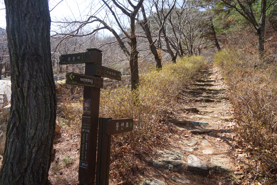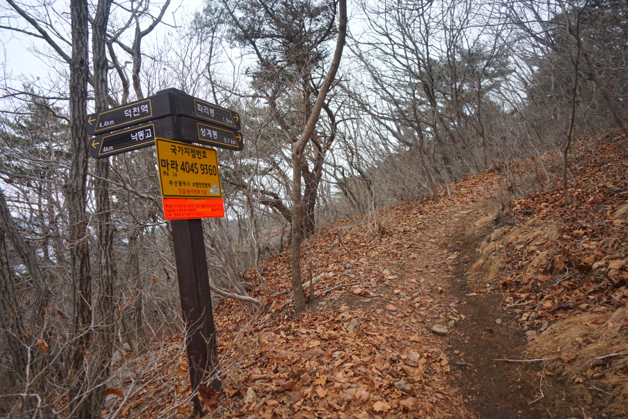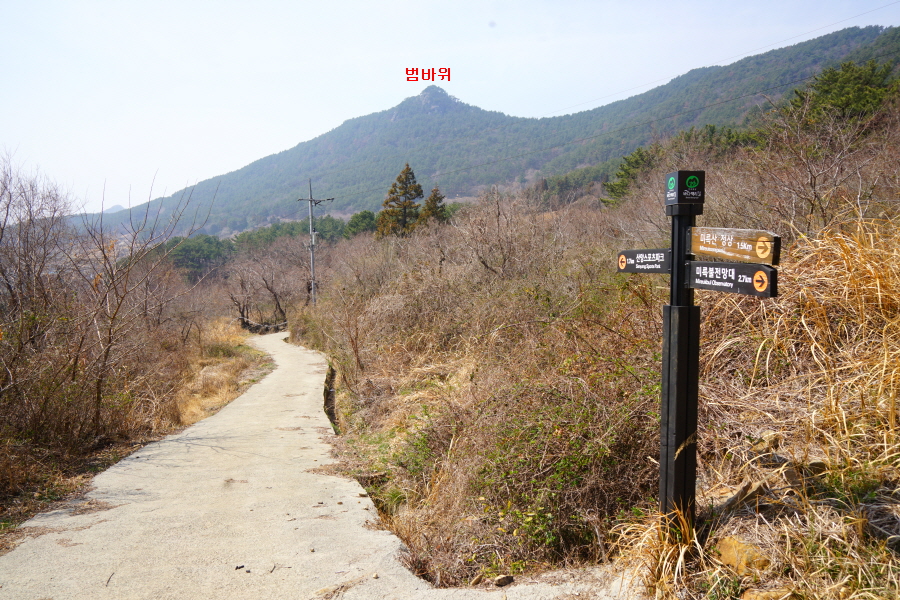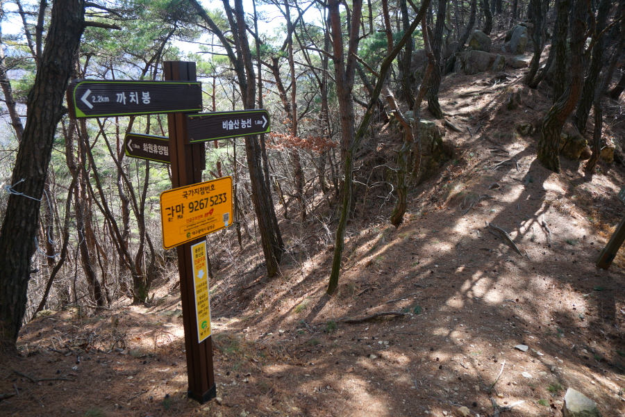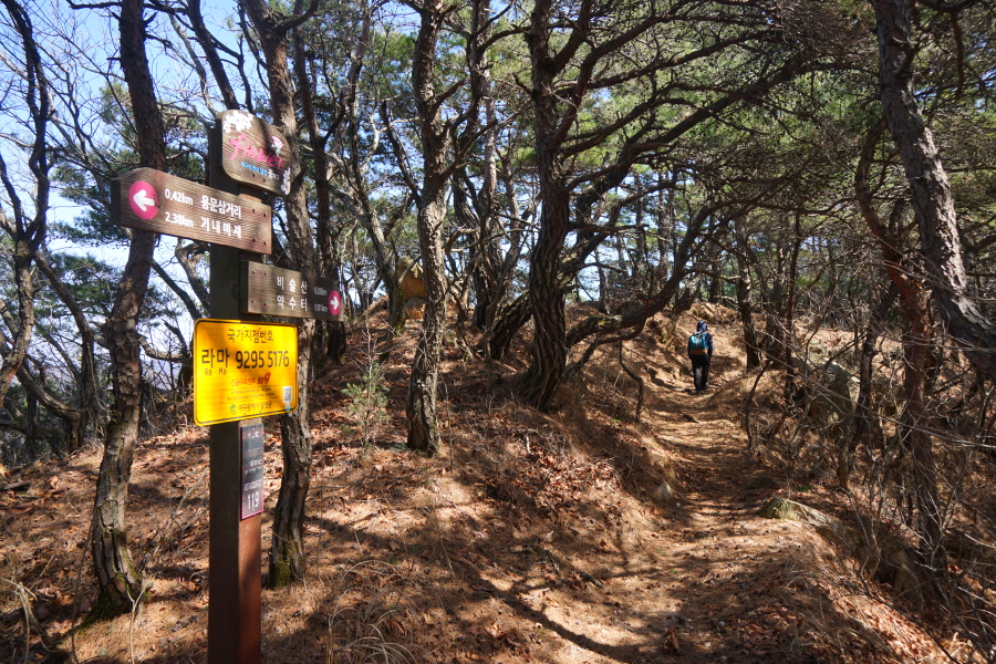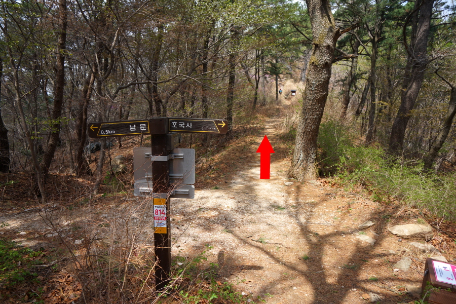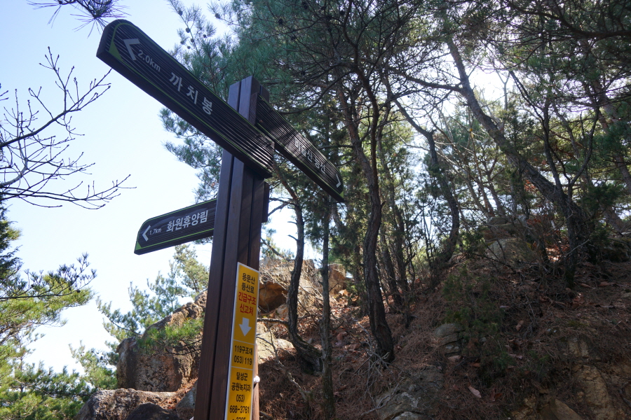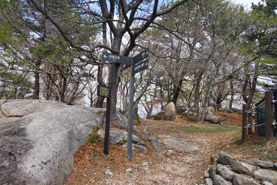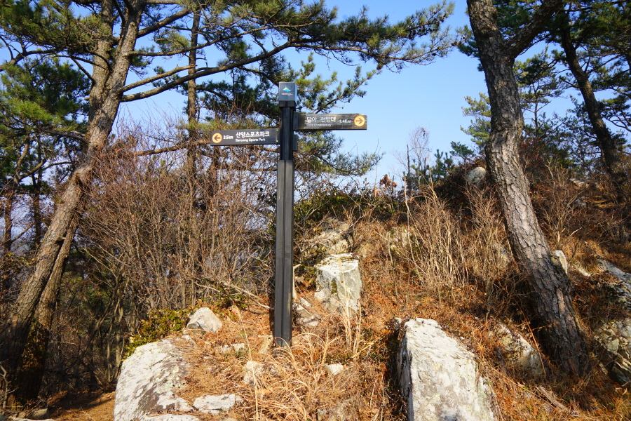 금정산 아기자기 능선~대륙봉 산행 경로는 다음과 같습니다. 광명사정류장~광명사 일주문 앞~절과 규림요양병원 사이 골목길~현위치 번호 9-1 표지목~장전-12 표지목 사거리~현위치 번호 9-2 표지목~아기자기 능선(암릉)~휴정암 임도~동제봉(2망루)~안부 사거리~대륙봉~산성고개~203번 남문 버스정류장~편백숲~고별대~구름다리~정자~무위암·보광암 임도~금정산 숲속 둘레길 사거리~광명사 버스정류장에 도착하는 원점회귀 코스입니다. 산행 거리는 약 7㎞이며 4시간30분 안팎 걸립니다.