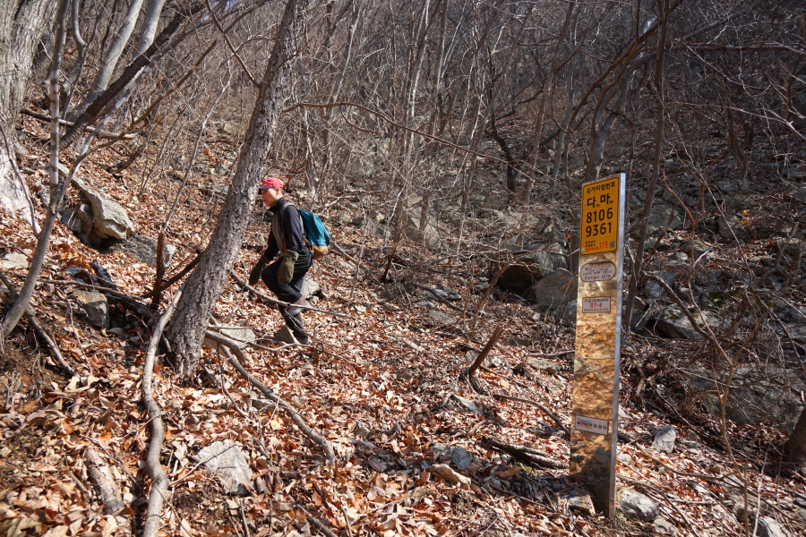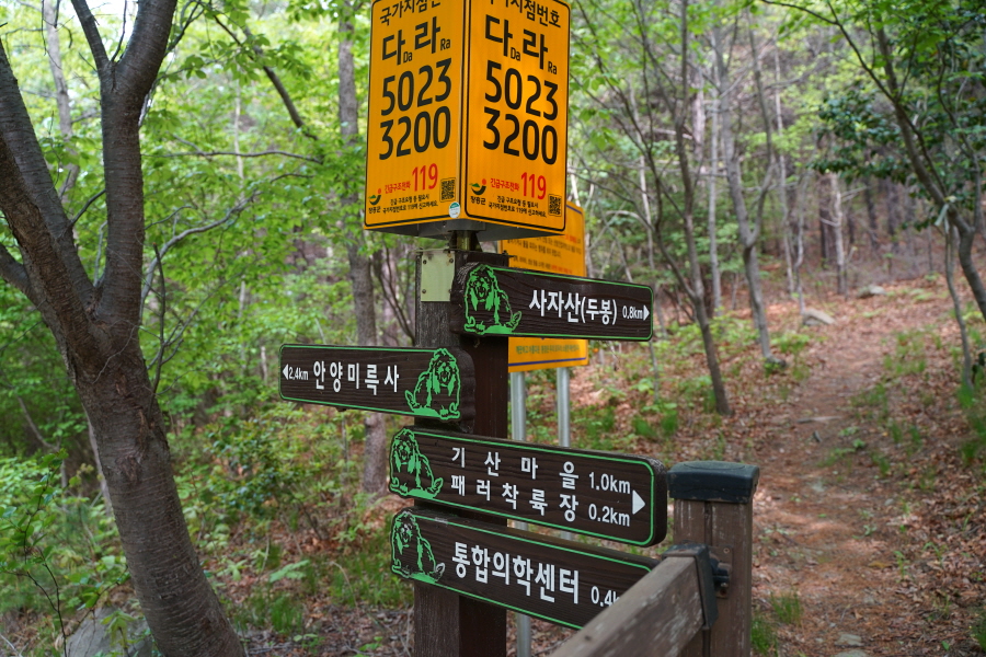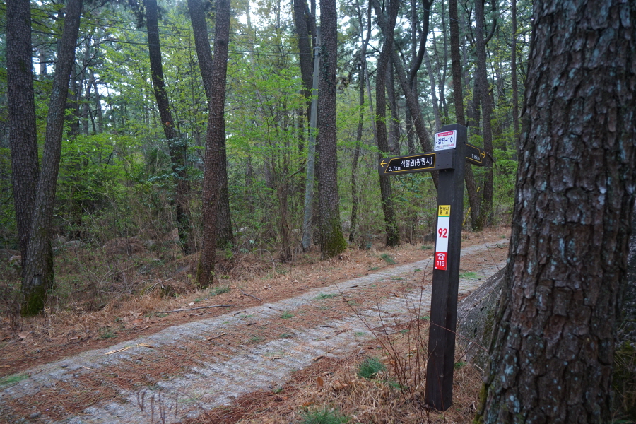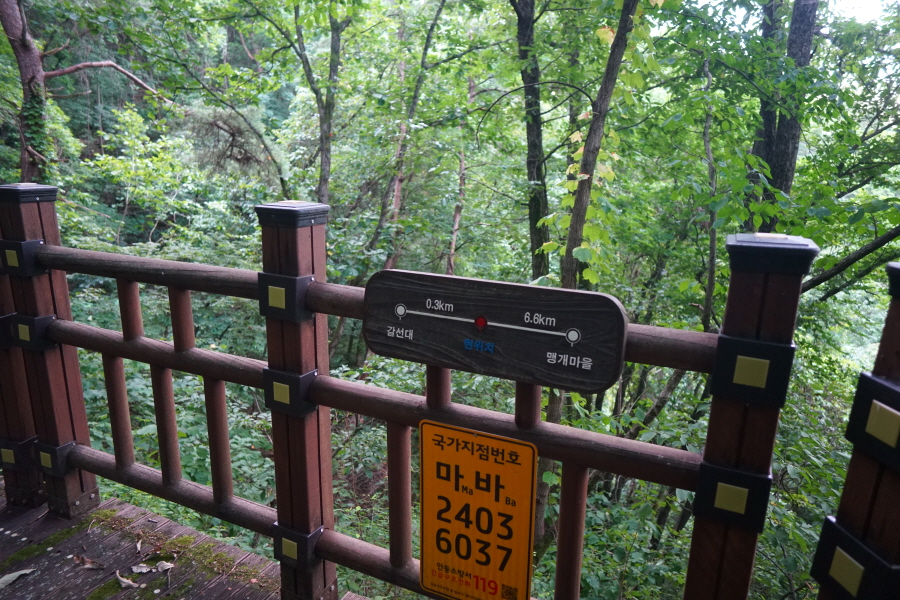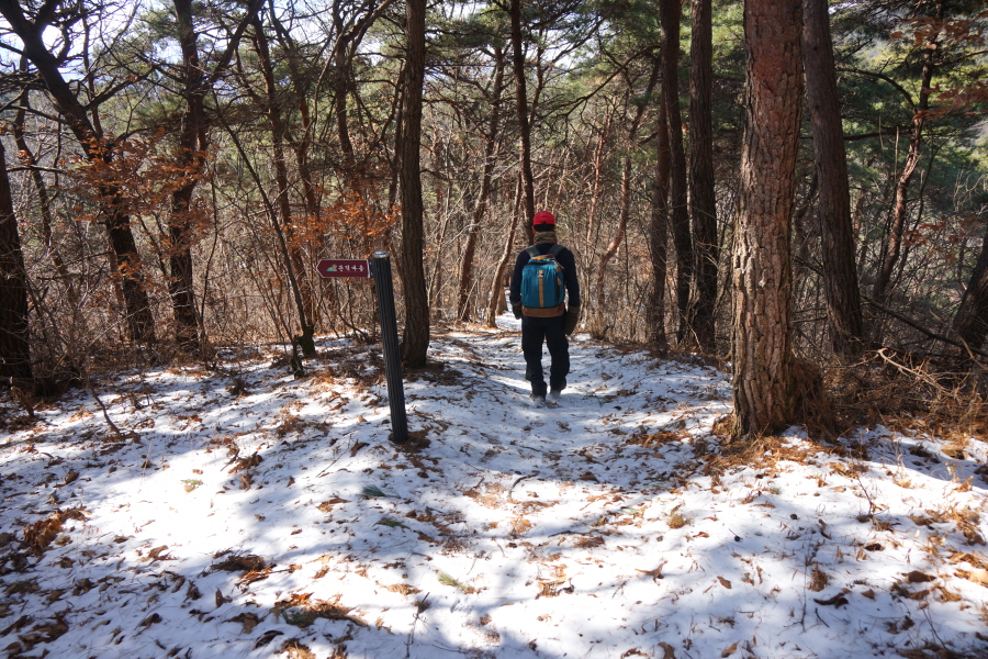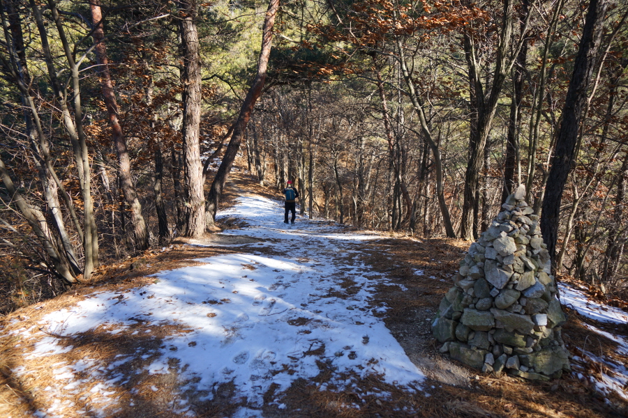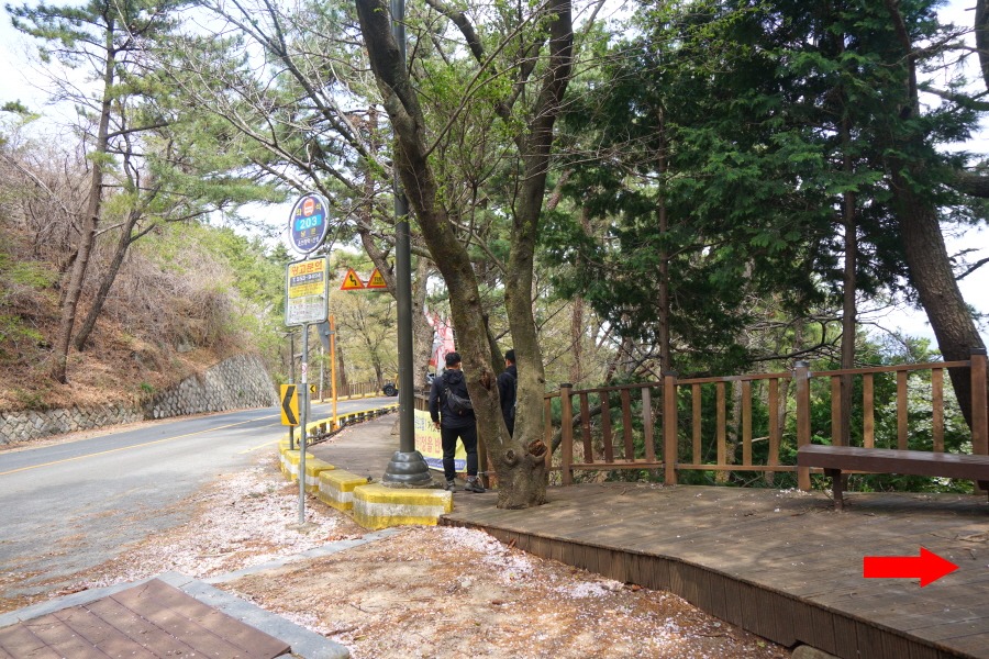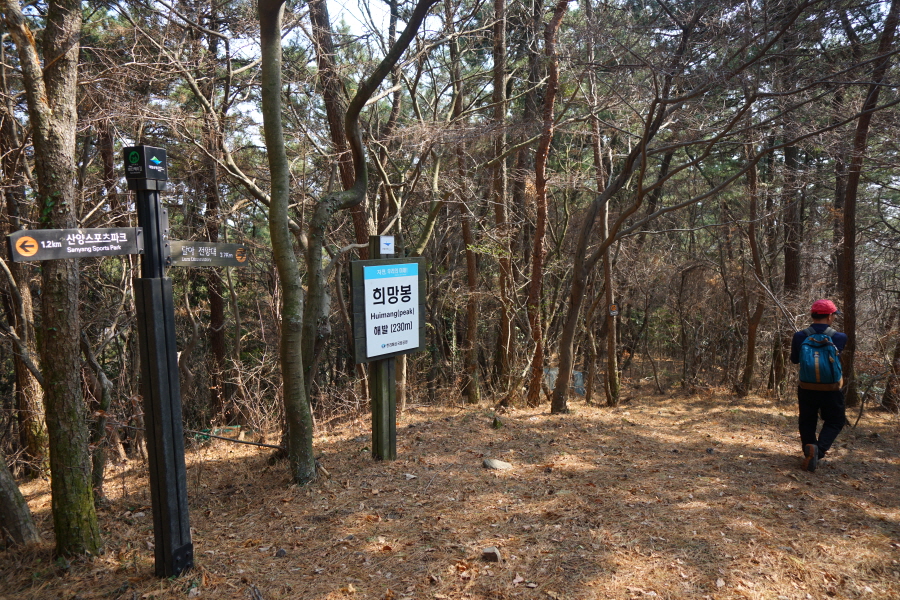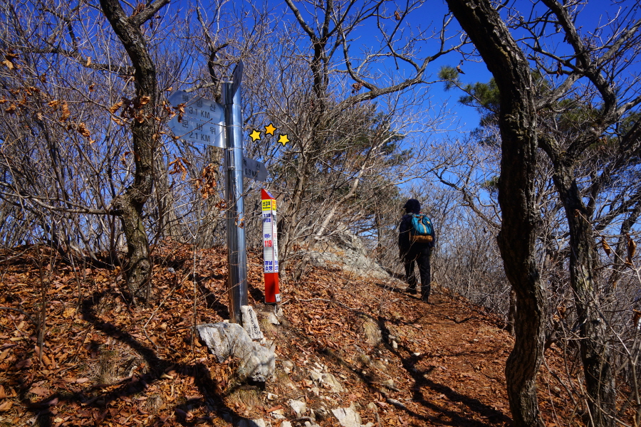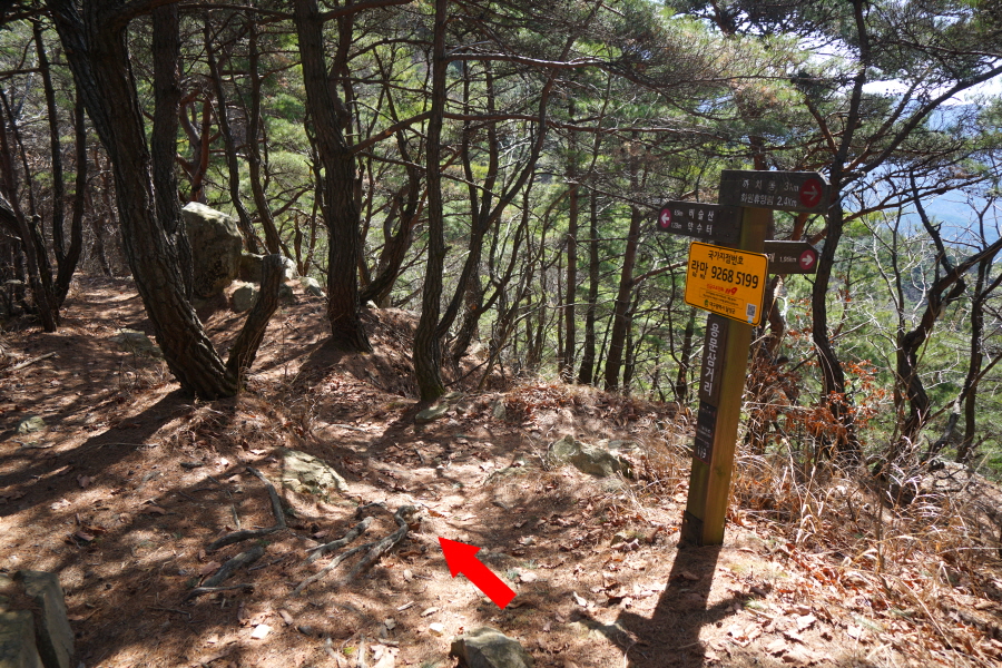 금정산 아기자기 능선~대륙봉 산행 경로는 다음과 같습니다. 광명사정류장~광명사 일주문 앞~절과 규림요양병원 사이 골목길~현위치 번호 9-1 표지목~장전-12 표지목 사거리~현위치 번호 9-2 표지목~아기자기 능선(암릉)~휴정암 임도~동제봉(2망루)~안부 사거리~대륙봉~산성고개~203번 남문 버스정류장~편백숲~고별대~구름다리~정자~무위암·보광암 임도~금정산 숲속 둘레길 사거리~광명사 버스정류장에 도착하는 원점회귀 코스입니다. 산행 거리는 약 7㎞이며 4시간30분 안팎 걸립니다.