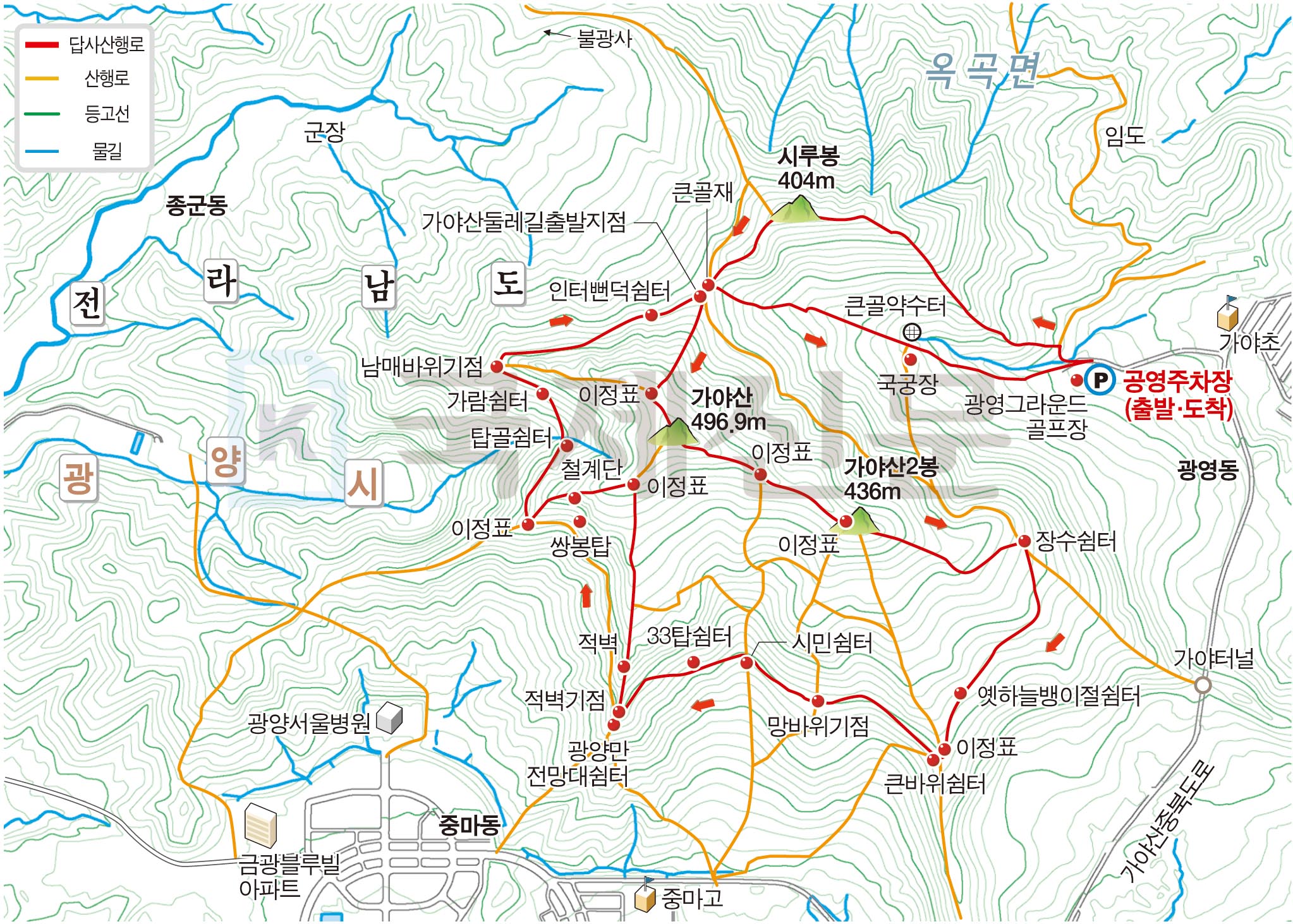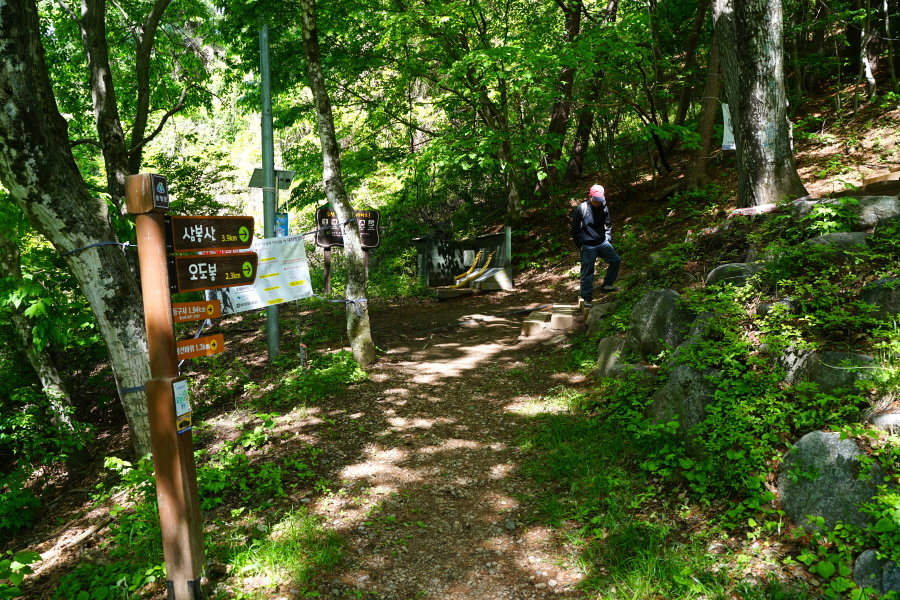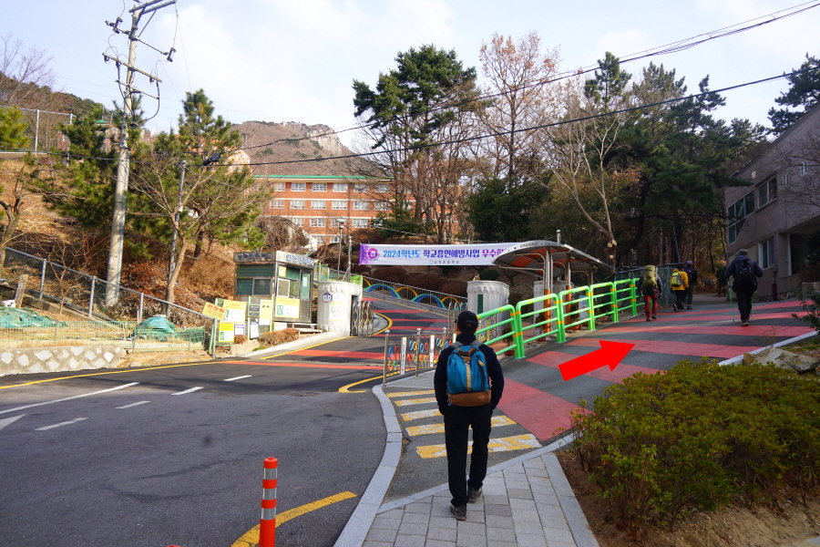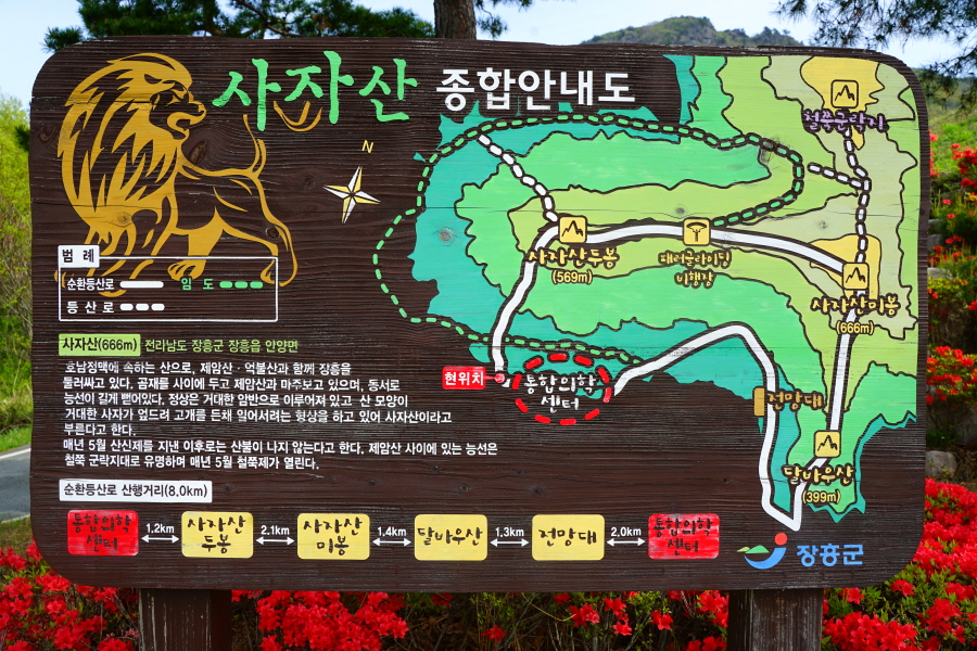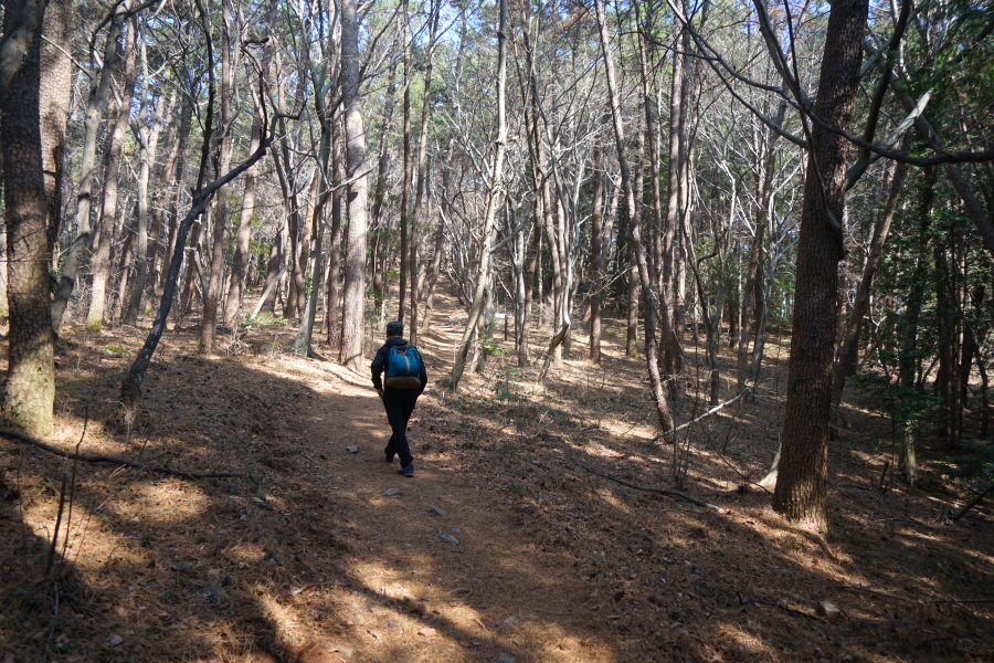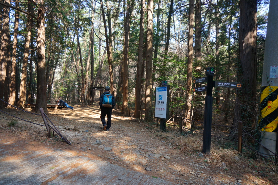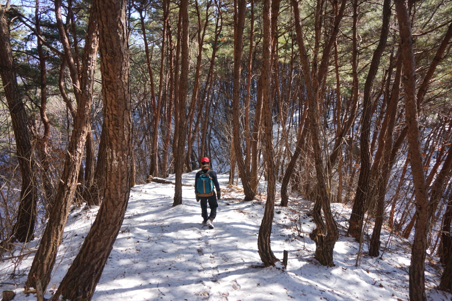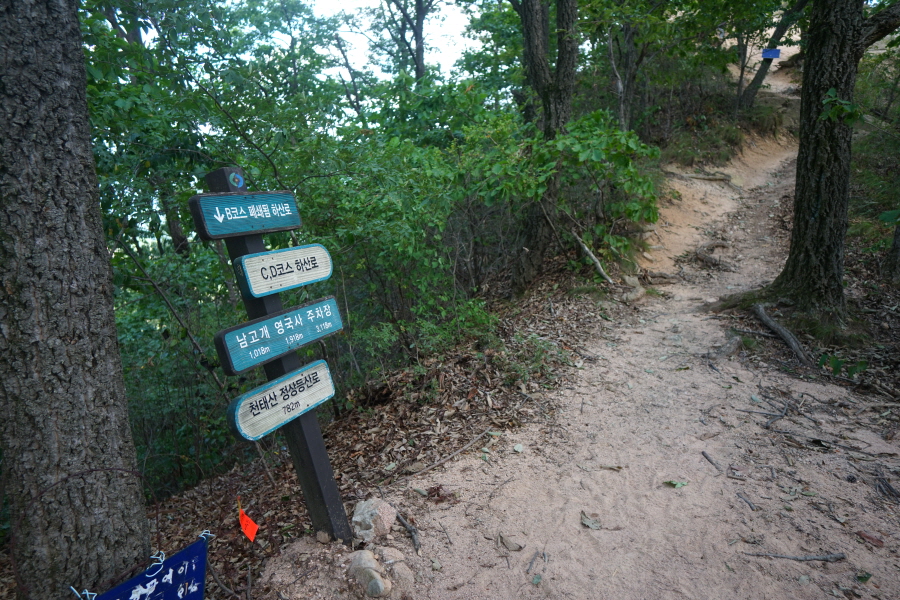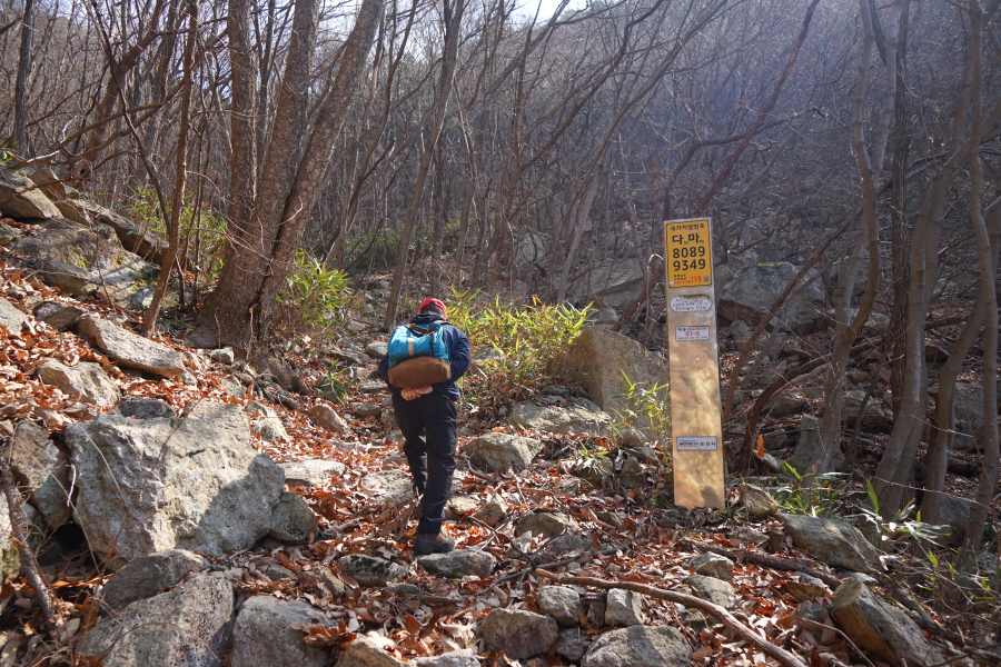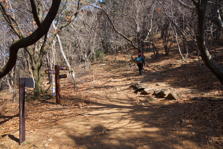 금정산 아기자기 능선~대륙봉 산행 경로는 다음과 같습니다. 광명사정류장~광명사 일주문 앞~절과 규림요양병원 사이 골목길~현위치 번호 9-1 표지목~장전-12 표지목 사거리~현위치 번호 9-2 표지목~아기자기 능선(암릉)~휴정암 임도~동제봉(2망루)~안부 사거리~대륙봉~산성고개~203번 남문 버스정류장~편백숲~고별대~구름다리~정자~무위암·보광암 임도~금정산 숲속 둘레길 사거리~광명사 버스정류장에 도착하는 원점회귀 코스입니다. 산행 거리는 약 7㎞이며 4시간30분 안팎 걸립니다.