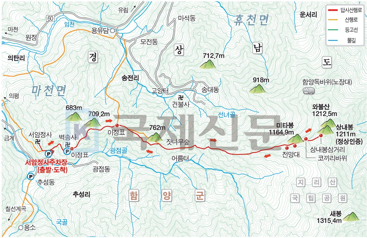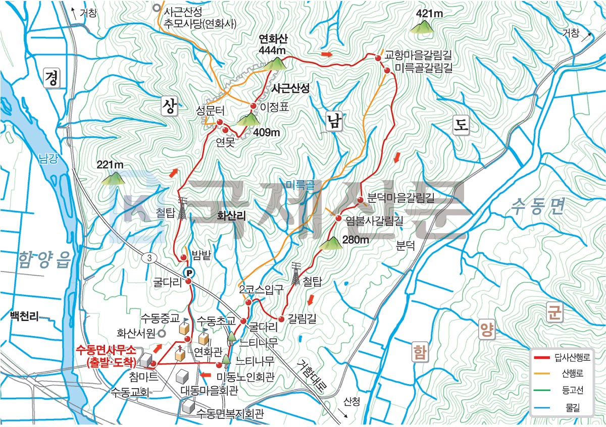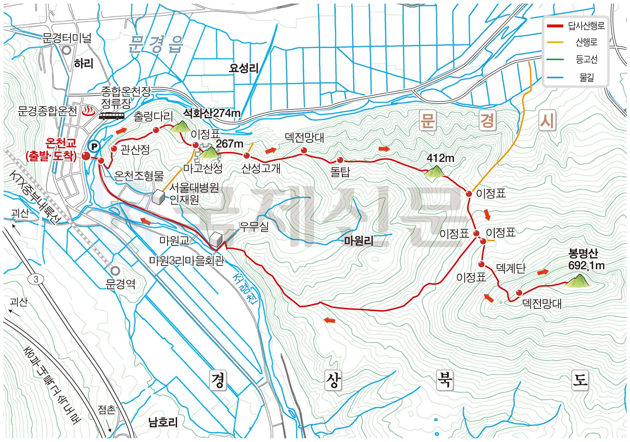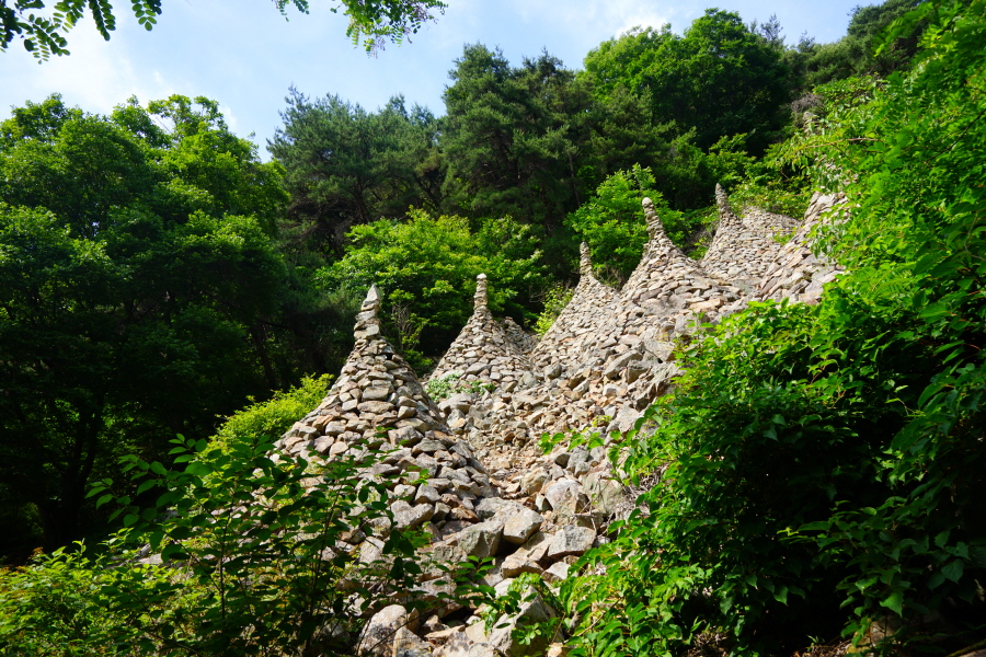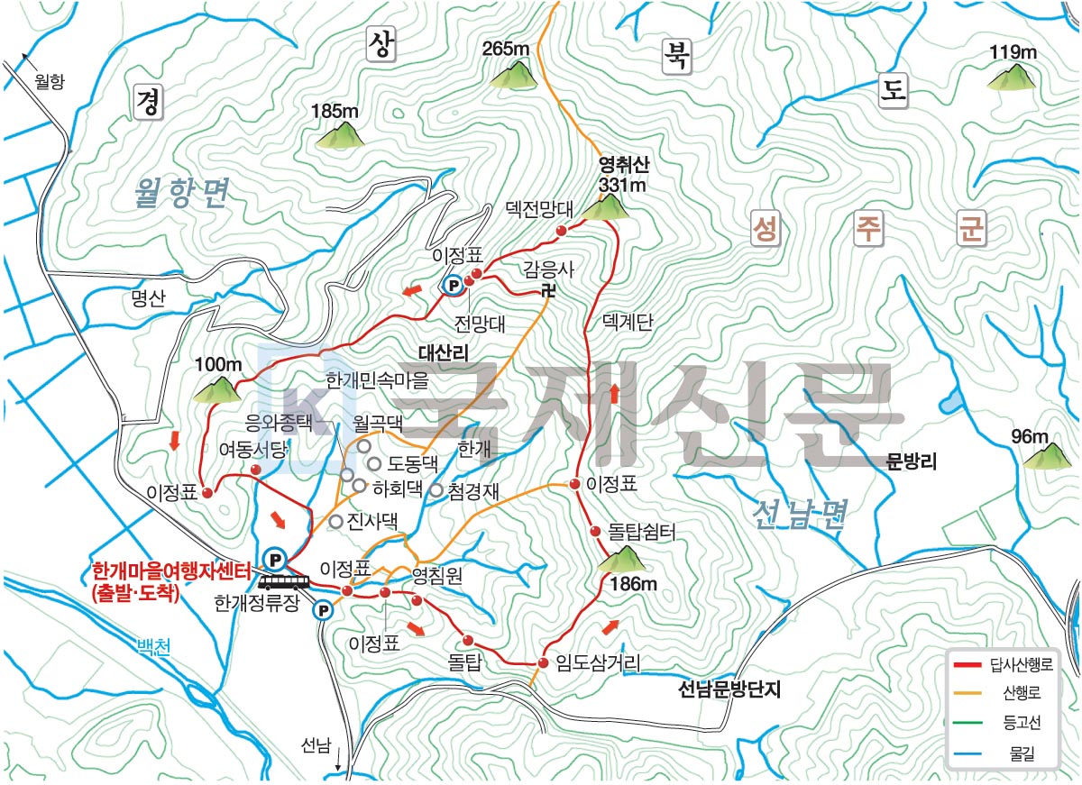 명활성 탐방로 경로는 다음과 같습니다. 진평왕릉 주차장~‘양지편’ 표석~보문 마을~3발굴지·북문지입구 갈림길~힌등산 갈림길~3발굴지~정토암~2발굴지~1발굴지~북문지~명활산~숲머리 갈림길~3발굴지·북문지 입구 갈림길~보문마을~진평왕릉 주차장으로 되돌아오는 원점회귀입니다. 산행거리는 약 6.5㎞이며 2시간 30분 안팎 걸립니다. (https://yahoe.tistory.com/3923 이창우(金井山)의 내청춘 산에 걸고 블로그 ‘(경남밀양산행) 밀양 초동면 함박산과 이만 대 걷기 좋은 꽃양귀비 초동 연가길. 2025년 6월 12일 포스팅’ 참고)