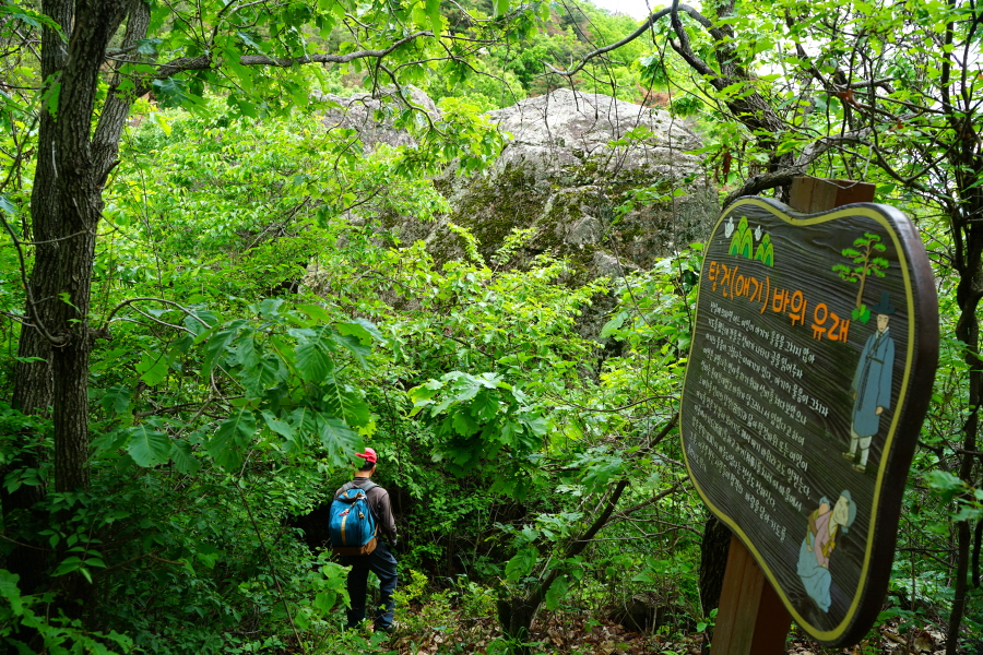 산이 안 높아 온 가족이 함께 찾아도 좋은 산은 경남 밀양시 초동면 오방리 뒷산인 함박산(작약산·425.3m)입니다. 산행 중 굴바위, 탕건바위, 장군바위 등을 만납니다. ‘함박꽃’은 작약으로도 불리다 보니 함박산을 작약산이라고도 합니다. 굴바위는 부처님 형상을 했다고 하며 암벽 아래에 큰 굴이 뚫려 있습니다. 굴바우등·굴밭등이라 하며 굴 안에는 약샘이 있어 이 물을 마시면 속병이 낫는다는 이야기가 있습니다.