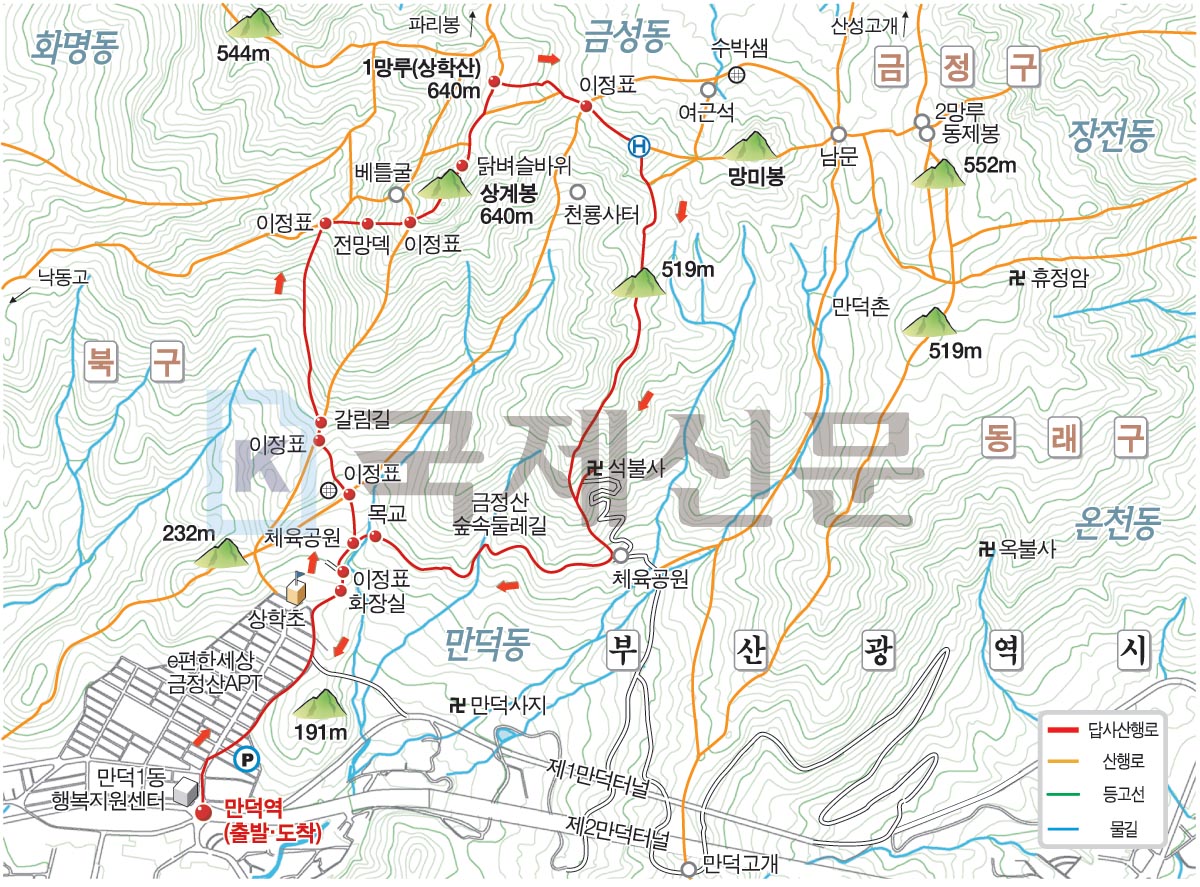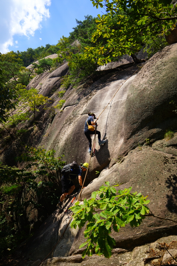 추선 연휴에 가볍게 탈 만한 첫 번째 산은 부산 시민이라면 금정산(金井山·800.8m)을 빼고 이야기 할 수 없습니다. 암벽 등반을 하거나 종주 산행을 즐기는 등산동호인 모두 아우르는 산이기 때문입니다. 대륙암 나비암 무명암 부채암 준행암 등 암장은 암벽 장비를 갖춘 전문 산꾼이 찾는다면, 하늘릿지, 베틀릿지, 아기자기 능선 등은 워킹(walking) 산행을 하는 등산객도 바위를 타는 릿지(ridge) 산행을 즐길 수 있는 코스입니다.